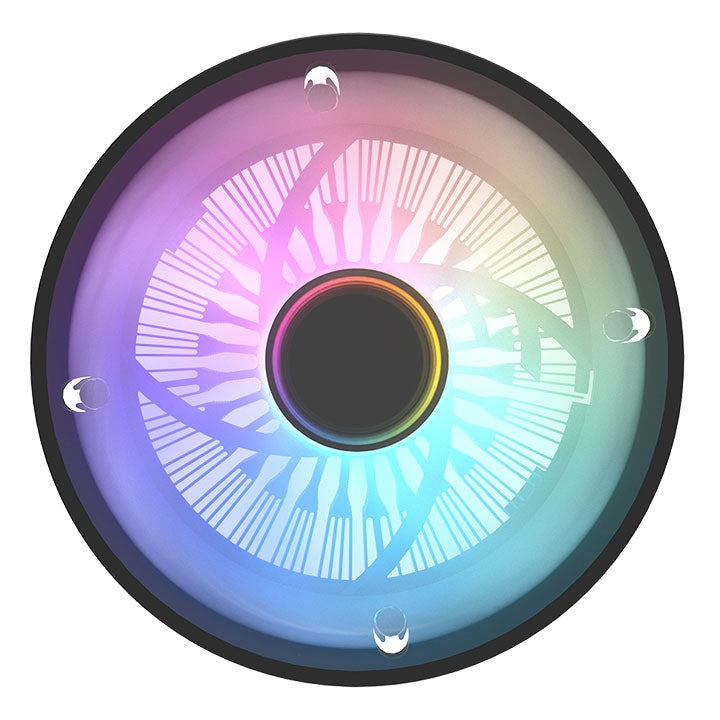 - Lighting: Infinity-mirror center with 16 LEDs in the outer ring and 6 LEDs in the fan—totalling 22 ARGB LEDs; syncs via standard 5 V motherboard header.