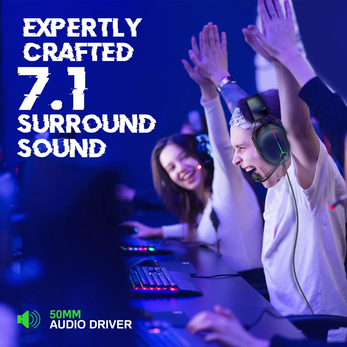 سماعة الألعاب VERTUX warfare Extreme Performance 7.1 بصوت محيطي مع ميكروفون ENC وردود فعل الاهتزاز