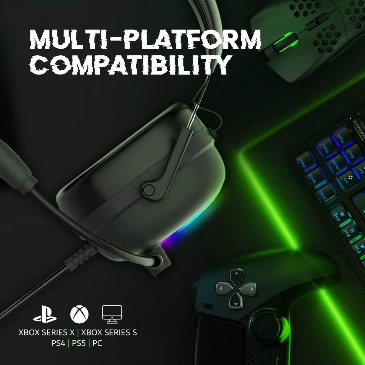 يلعب الصوت دورًا أساسيًا في الألعاب الغامرة. ابتكر تجربة صوت محيطي 7.1 نابضة بالحياة، تُمكّنك من عيش تجربة لعبك براحة تامة. يوفر الميكروفون فائق الوضوح المزود بتقنية ENC وضوحًا صوتيًا يُضاهي الاستوديوهات لمحادثات عالية الجودة. استمع إلى كل صوت عالٍ وعميق، مع تقنية الاهتزاز المُحسّنة التي يُمكن التحكم بها بزر. تتميز سماعة Warfare بتصميم خفيف الوزن ومريح، ووسائد أذن ناعمة، مما يجعلها مثالية لساعات من اللعب.