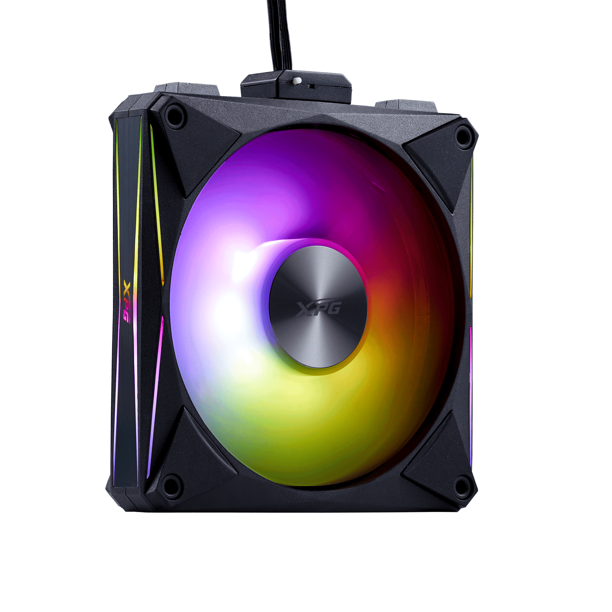 مروحة XPG HURRICANE MAG 120 ARGB PWM مغناطيسية (عبوة من 4 قطع) - شفرة مزدوجة الدوران، كابل واحد متسلسل، 300-2000 دورة في الدقيقة، محرك هادئ سداسي الأقطاب