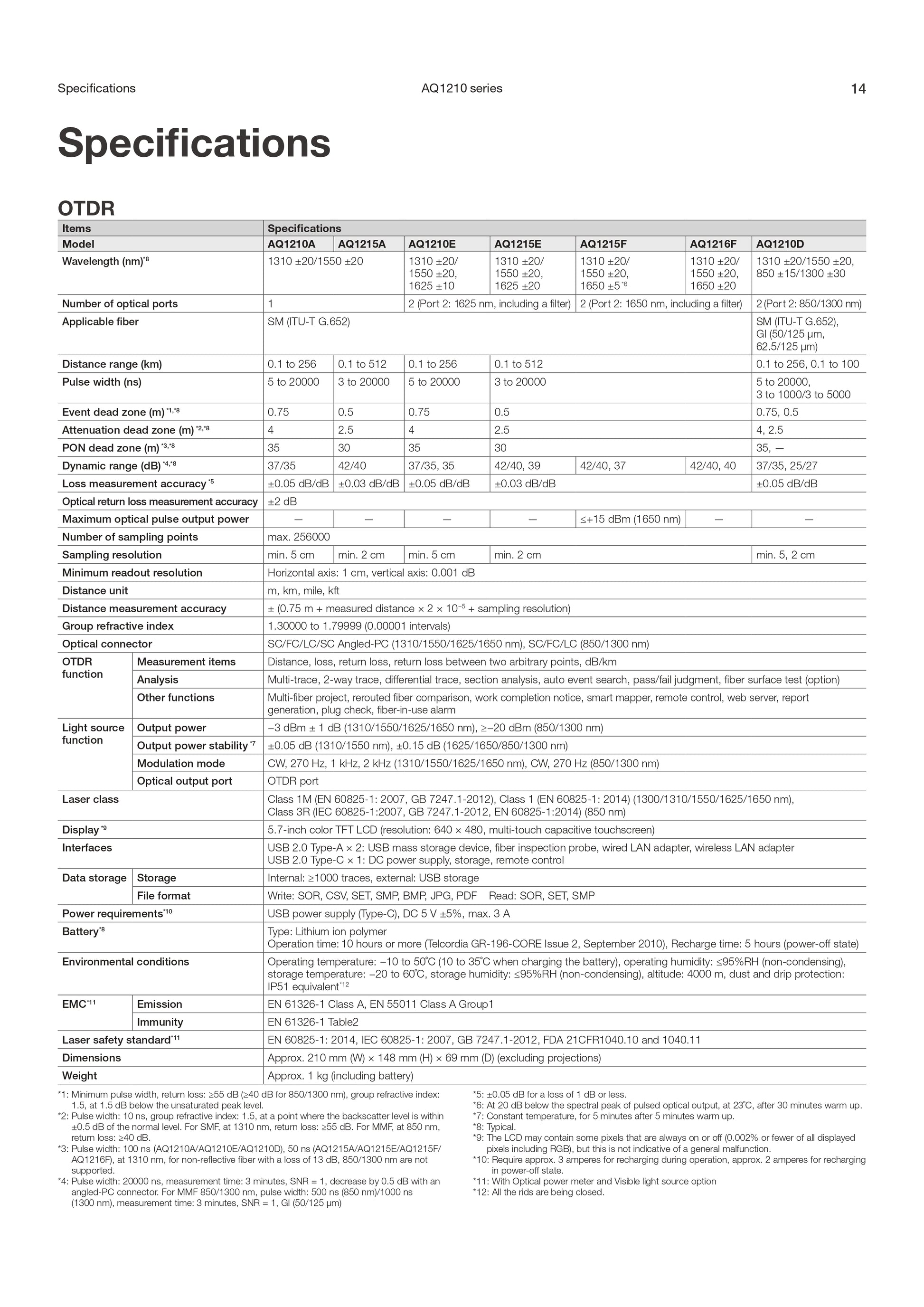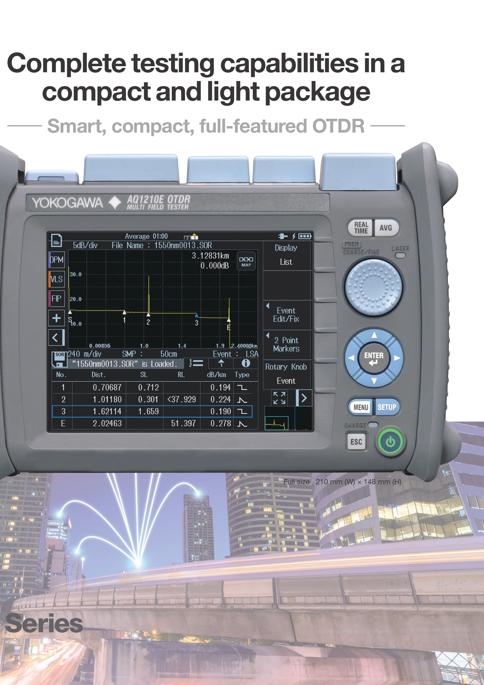 جهاز اختبار OTDR من Yokogawa AQ1210A | 1310/1550 نانومتر، 37/35 ديسيبل | تحليل شبكة الألياف الضوئية عالي السرعة باللمس المتعدد وفي الوقت الحقيقي