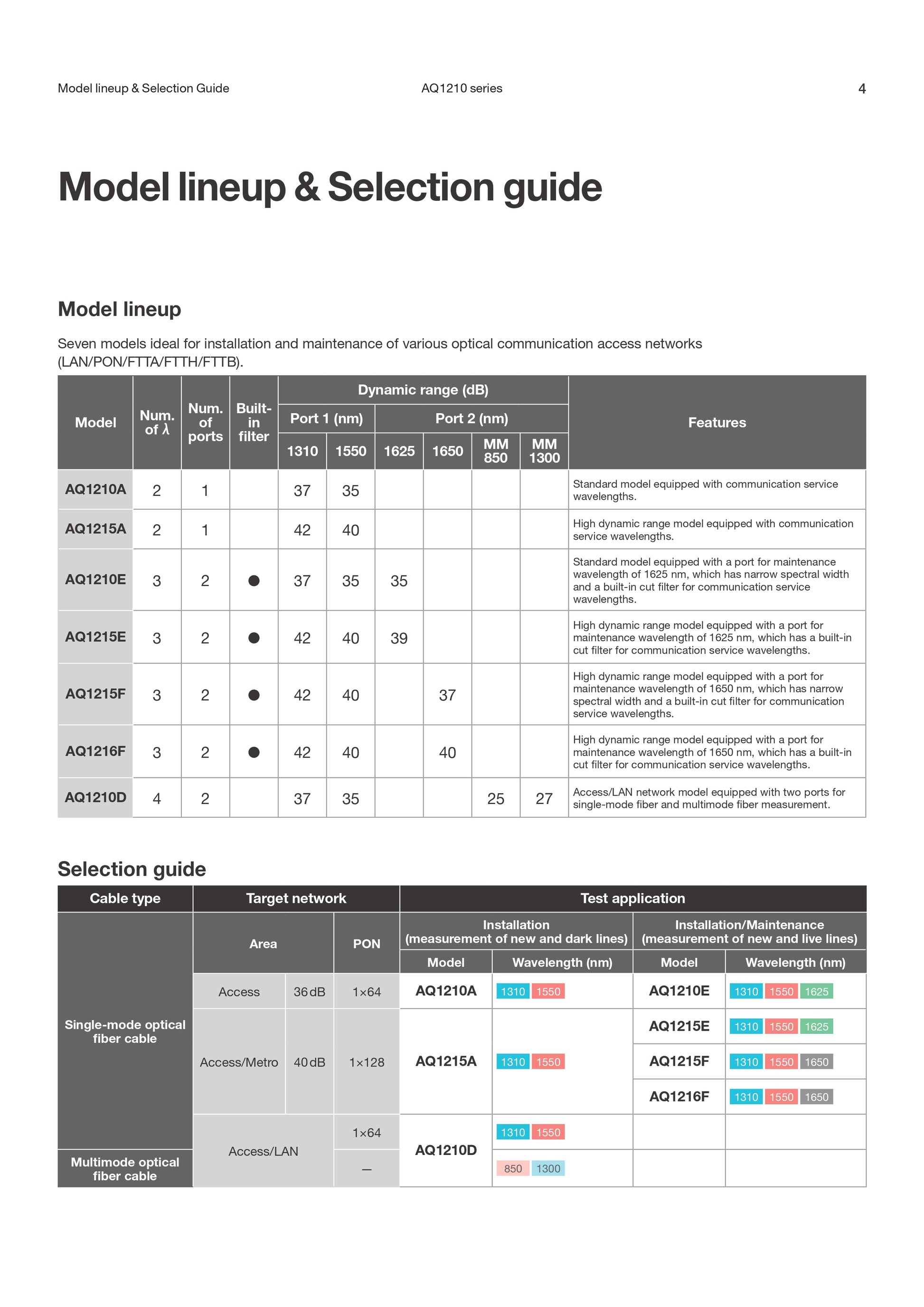 - الأطوال الموجية: 1310 نانومتر / 1550 نانومتر