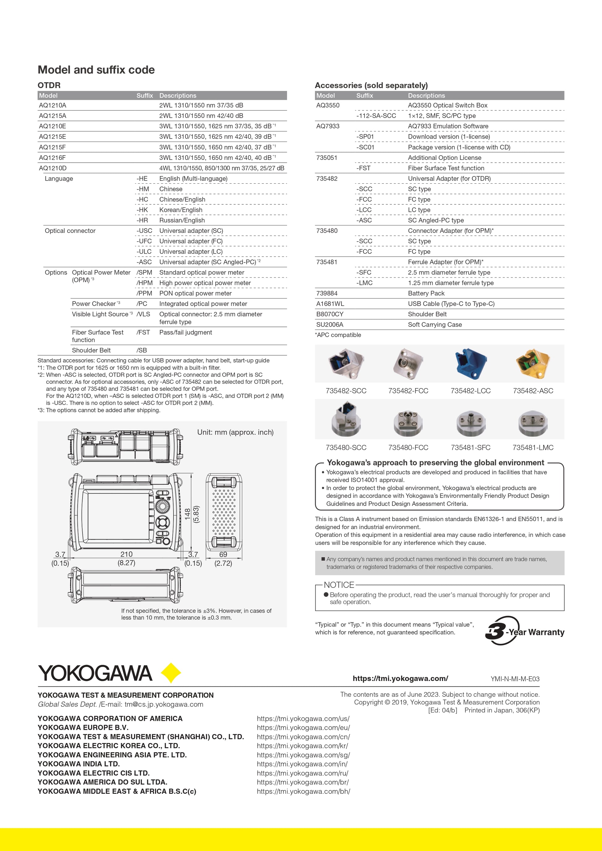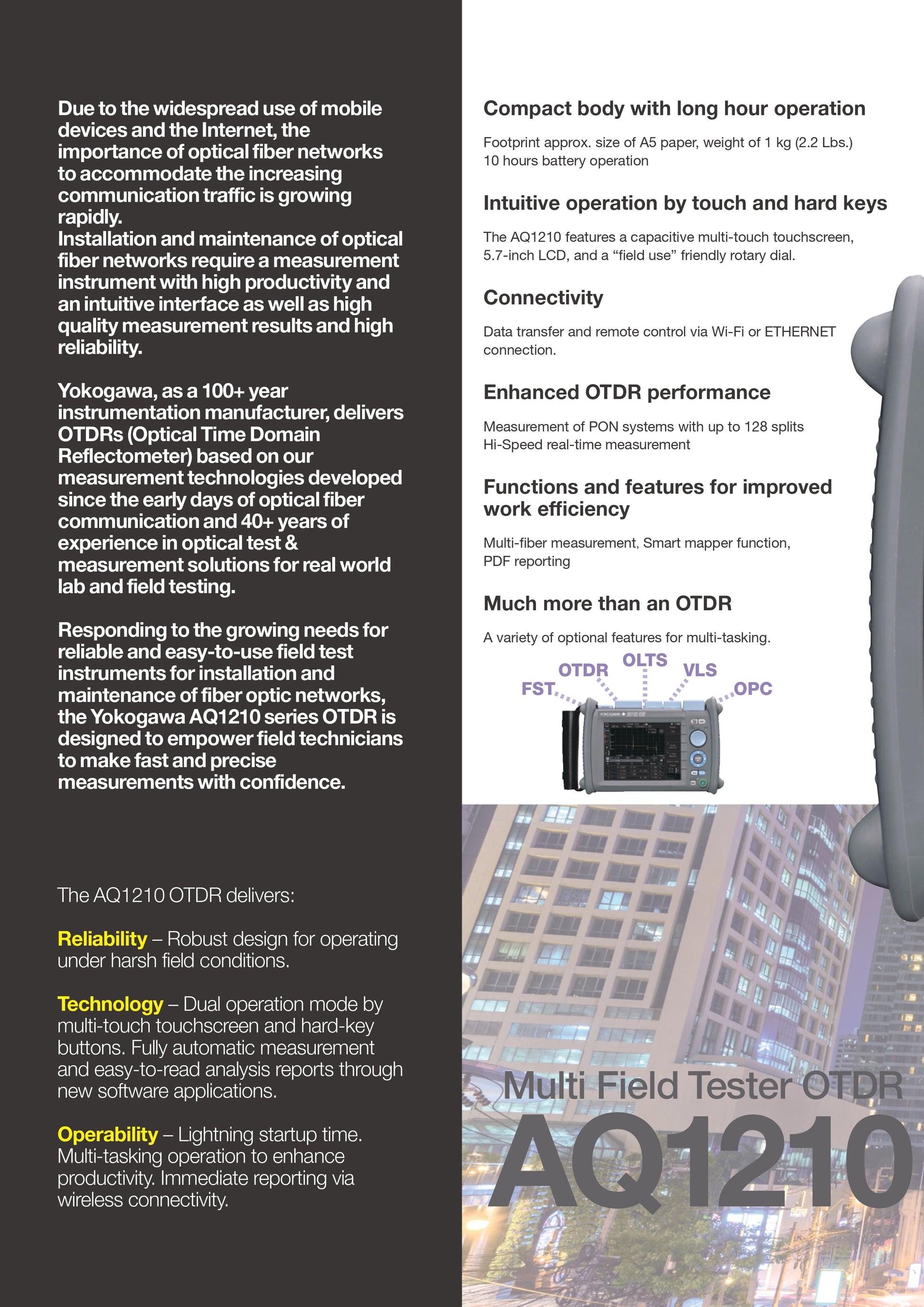 جهاز اختبار OTDR Yokogawa AQ1210D | SM/MM، 1310/1550/850/1300 نانومتر | نموذج الوصول/الشبكة المحلية مع شاشة متعددة اللمس وعمر بطارية طويل