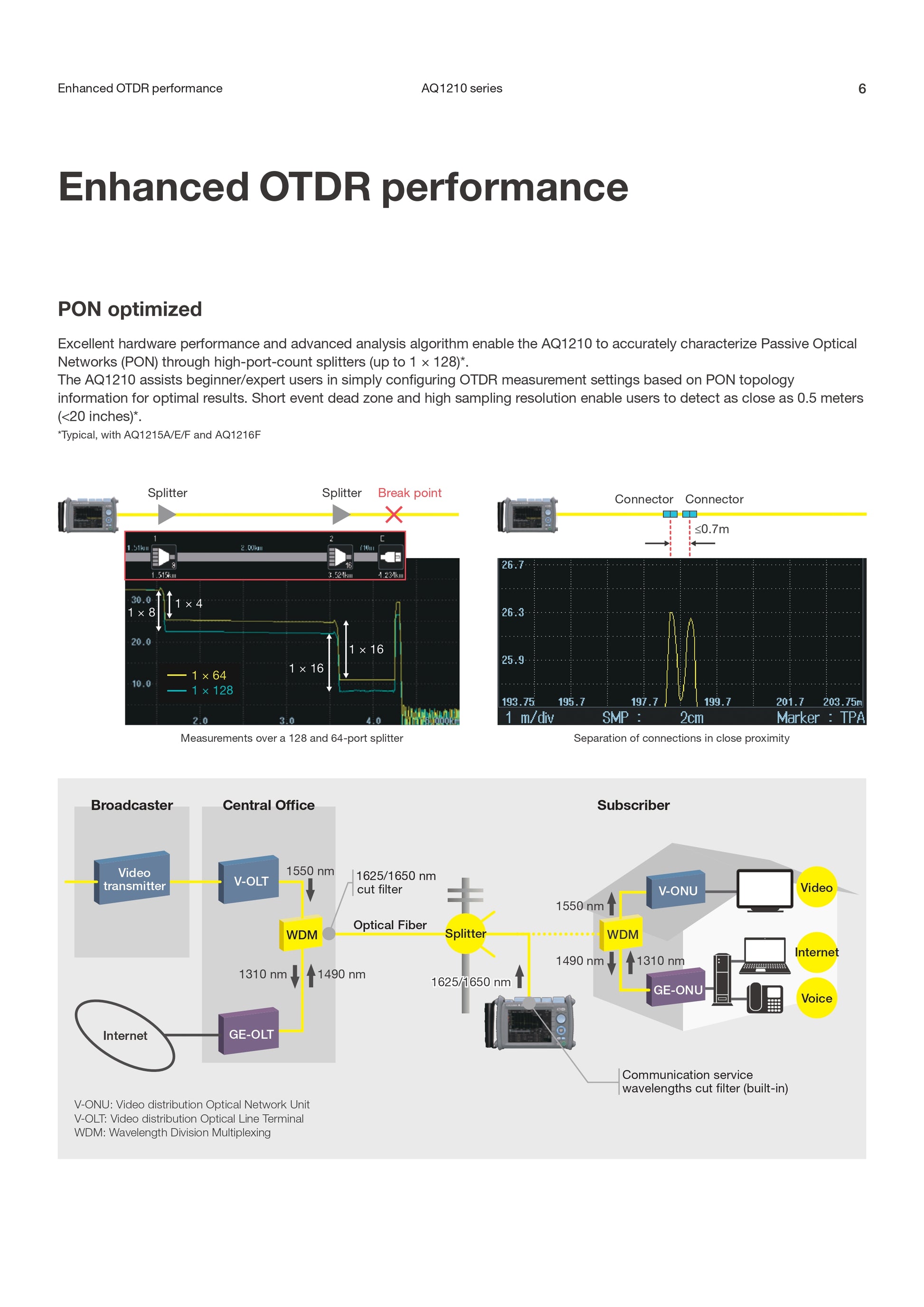 يوفر طراز AQ1210D اختبارًا قويًا للألياف ثنائية الوضع بتصميم صغير الحجم. يدعم هذا الطراز الألياف أحادية الوضع ومتعددة الأوضاع، وهو مصمم خصيصًا لتطبيقات الشبكات المحلية (LAN) وشبكات الوصول التي تتطلب جهاز OTDR محمولًا ومتعدد الاستخدامات.