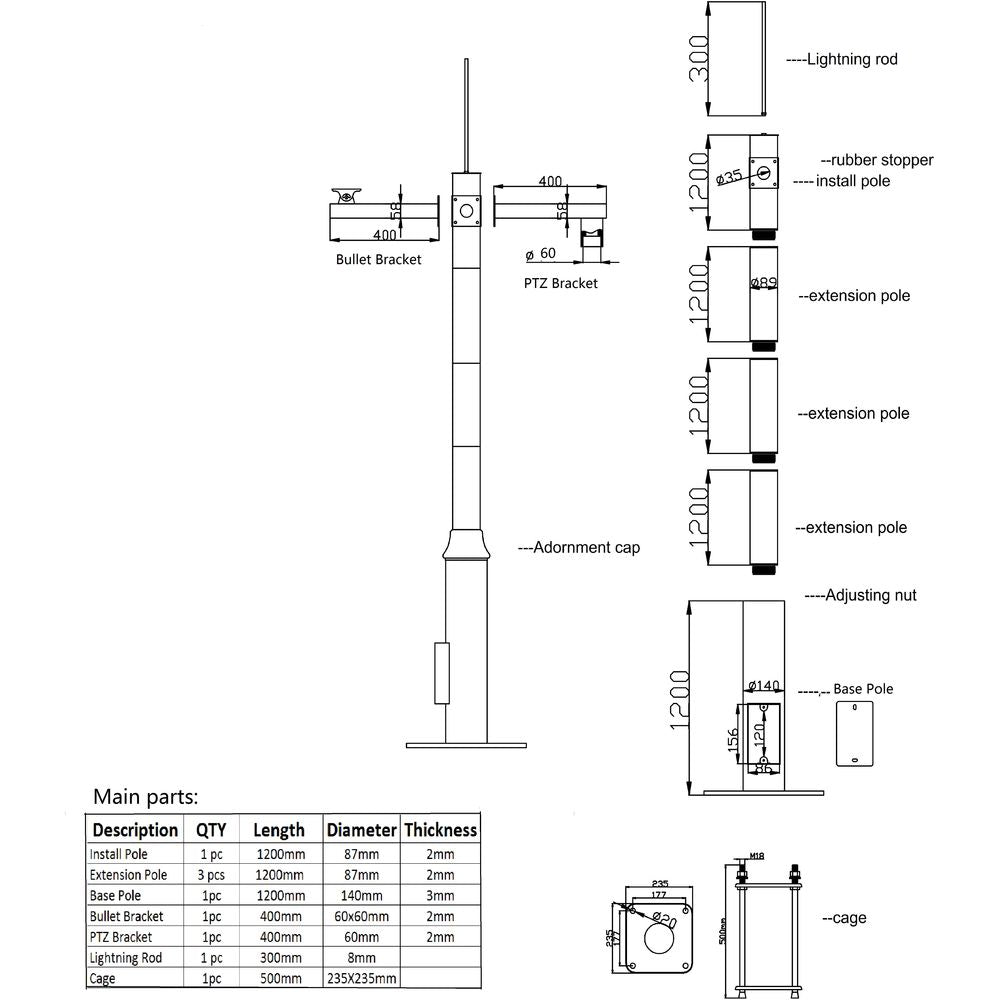 - Application: Ideal for mounting surveillance cameras in various outdoor environments