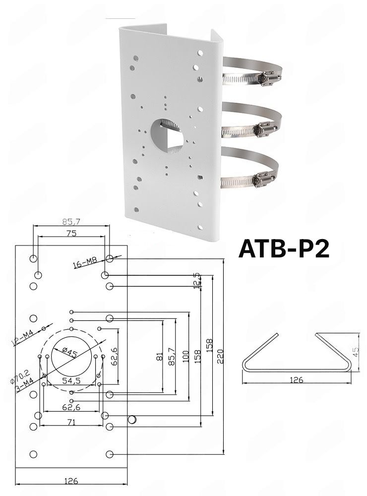 - Type: Adjustable pole mount bracket for surveillance cameras
