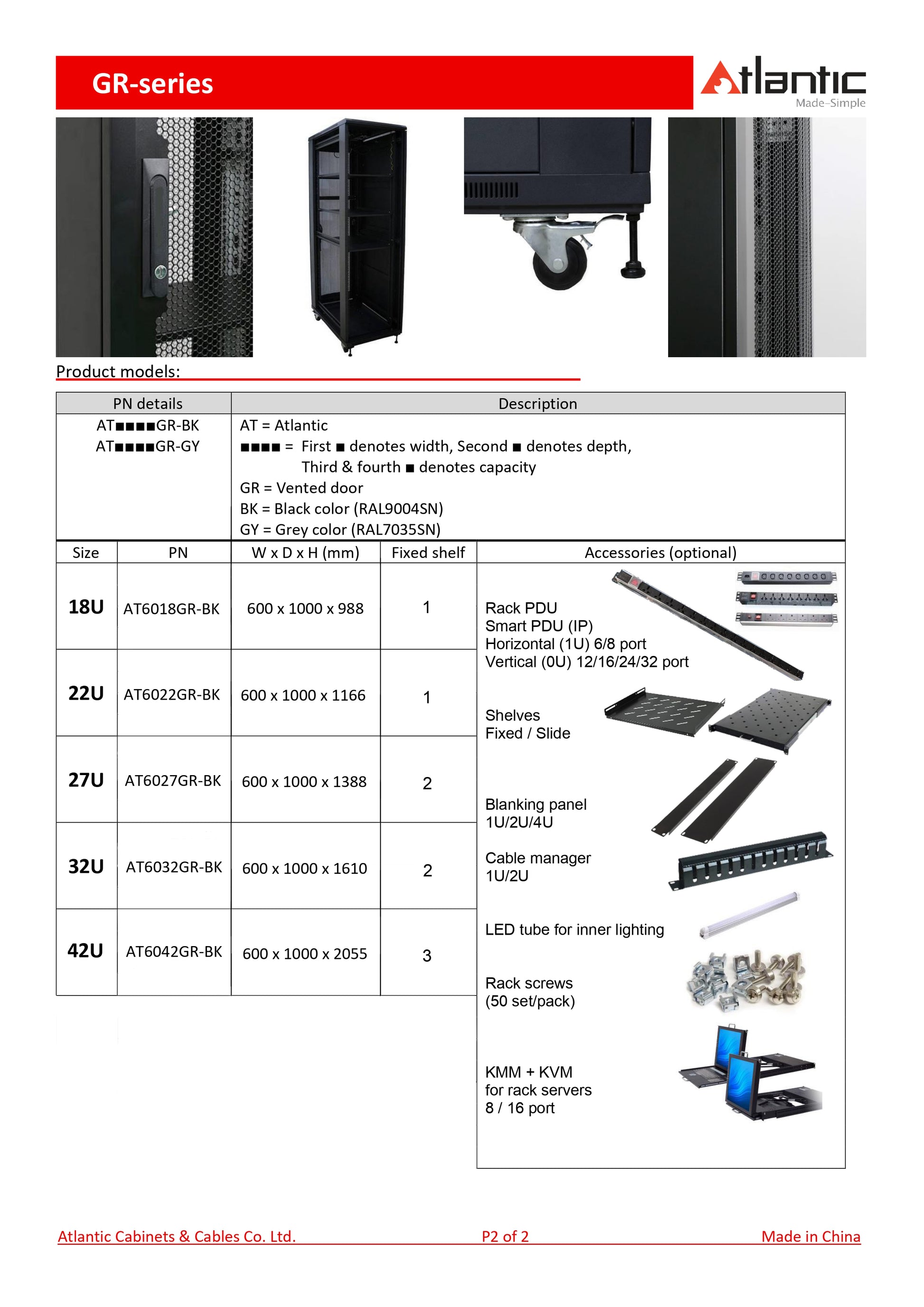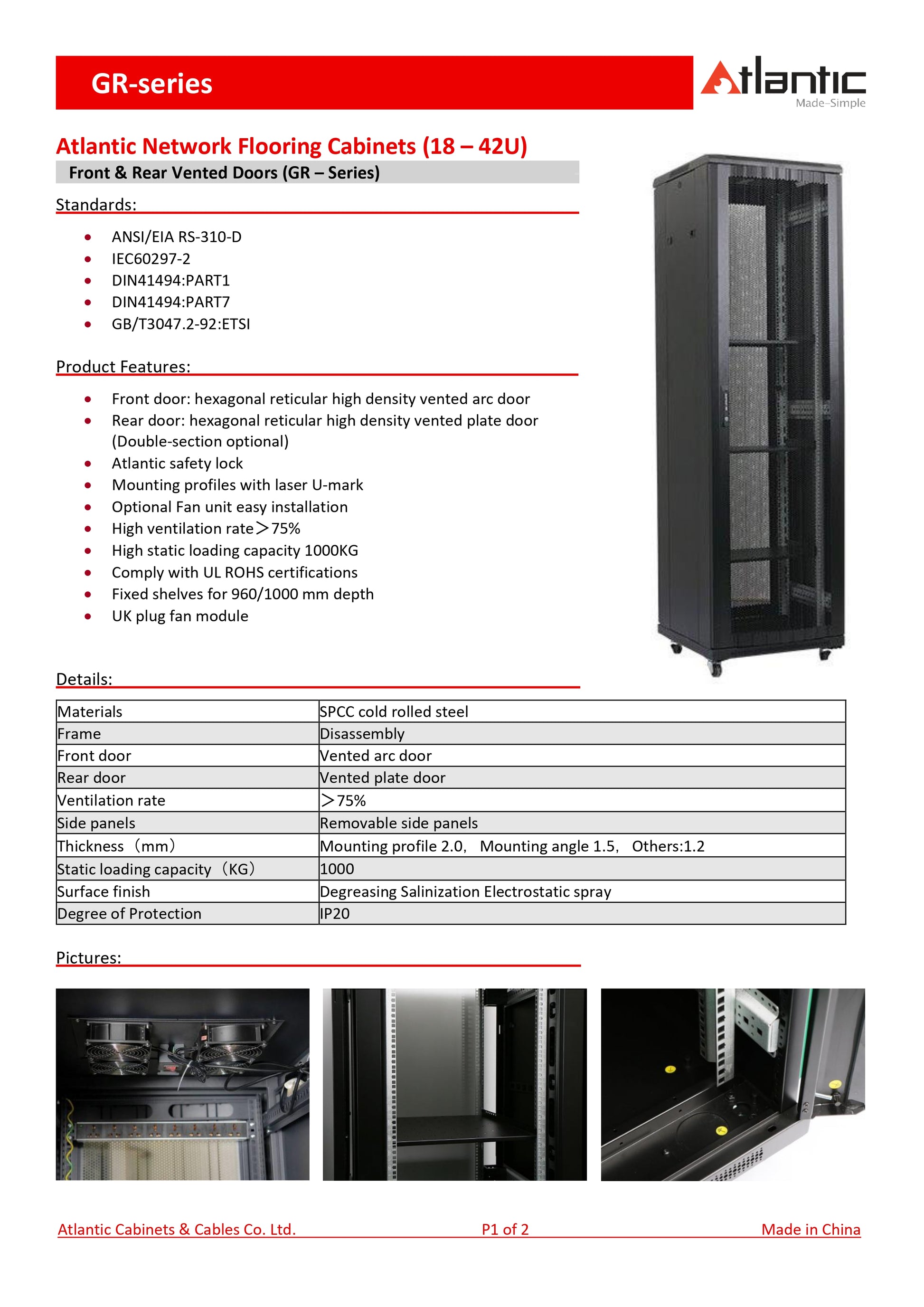 42U: Atlantic 100x60x205 cm Server Cabinet /High static loading capacity of 800KG.