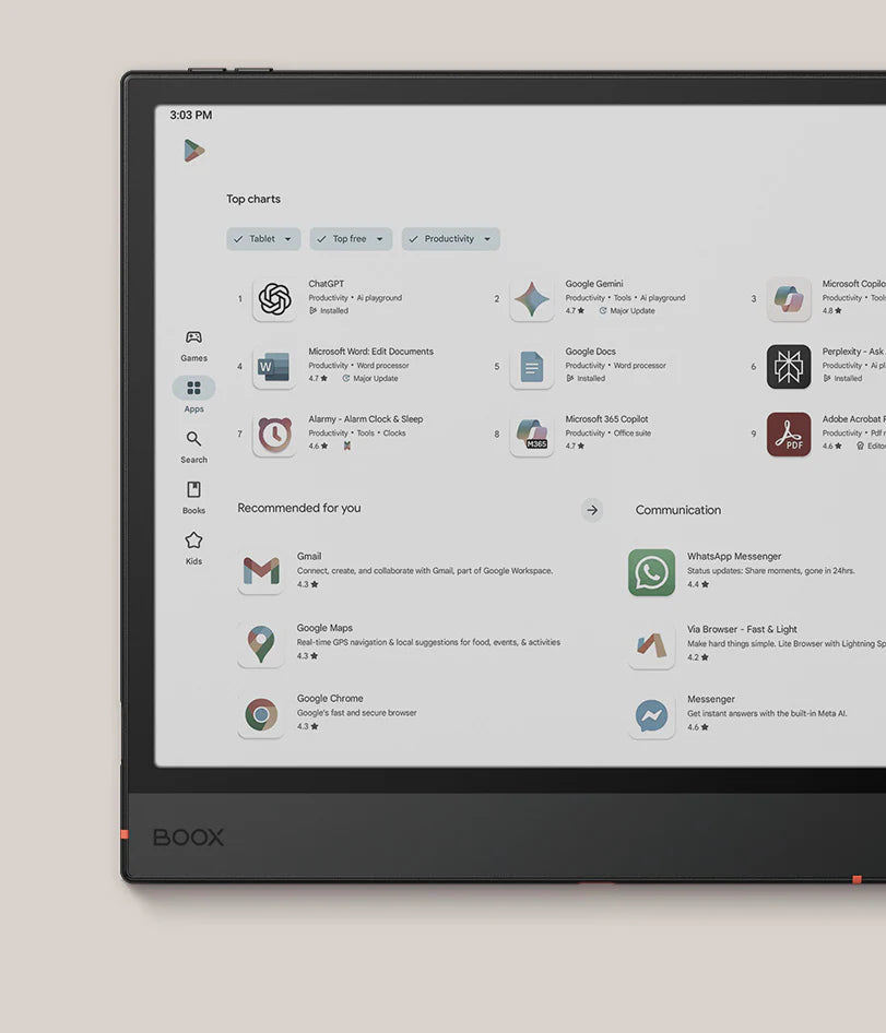 - 10.3" Kaleido 3 Color Display: High-resolution E-Ink screen with 4096 colors for clear reading and vibrant notes.