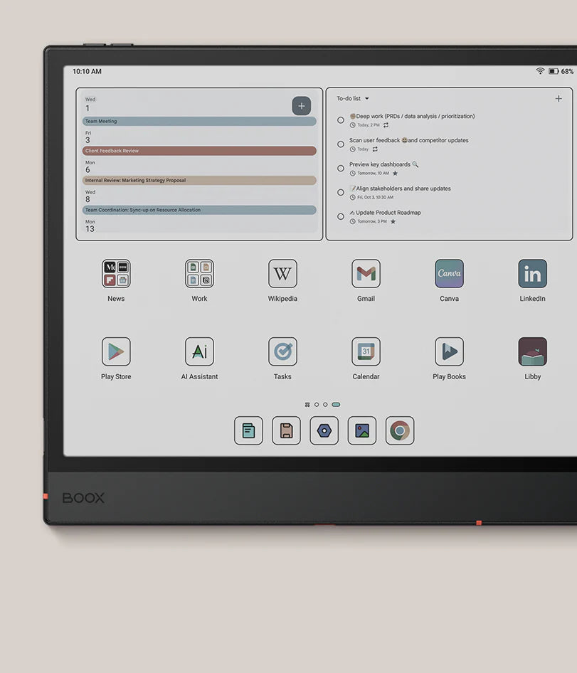 The BOOX Note Air5 C is a cutting-edge color E-Reader and digital notepad designed for professionals, students, and anyone seeking a versatile digital reading and writing experience. Equipped with a 10.3-inch Kaleido 3 color display and powered by Android 15, this device ensures smooth multitasking, high productivity, and a comfortable reading experience. It supports advanced note-taking, drawing, and document management while maintaining a slim, lightweight design.