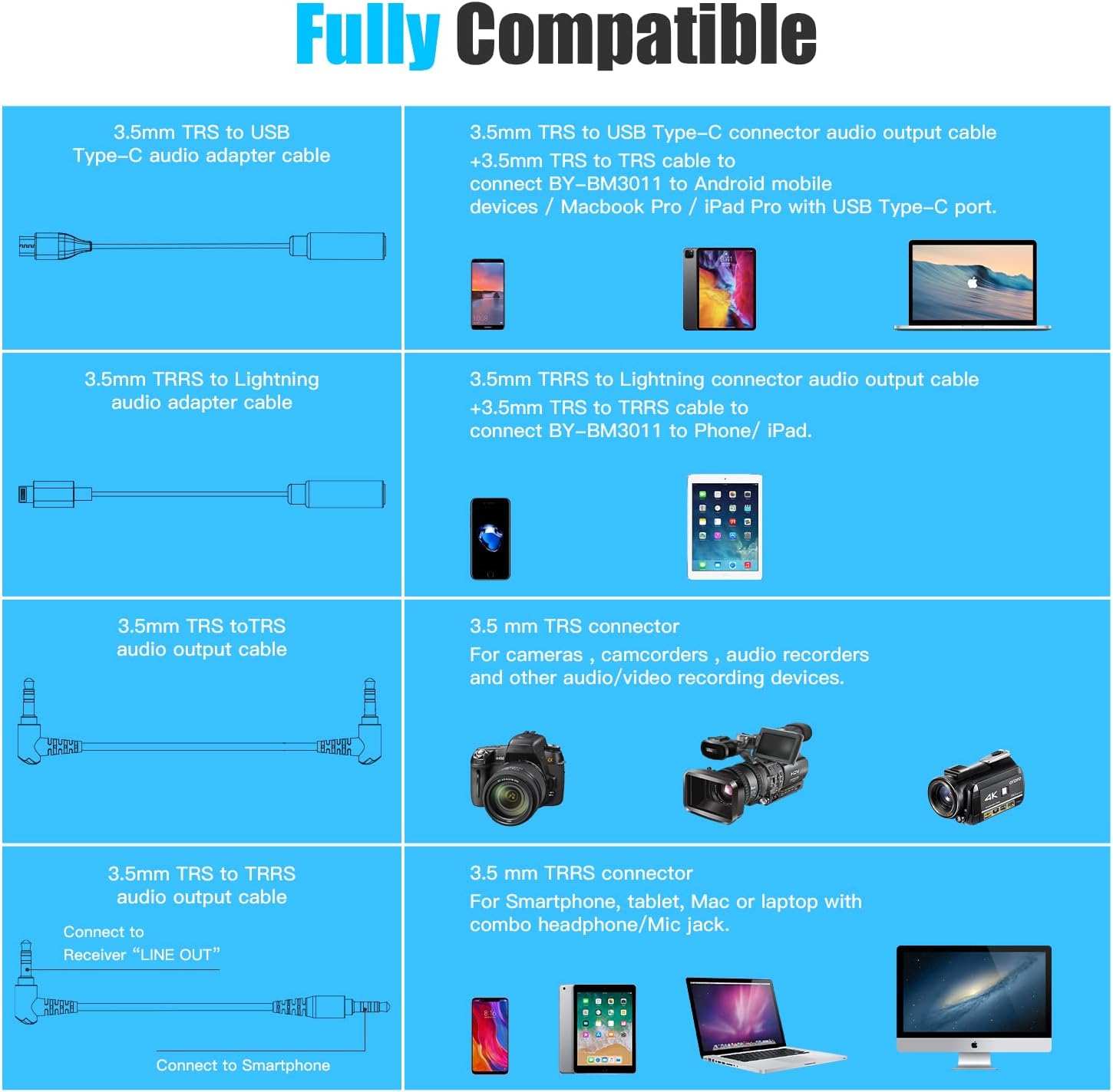 - 3.5mm plug compatible with most cameras and camcorders