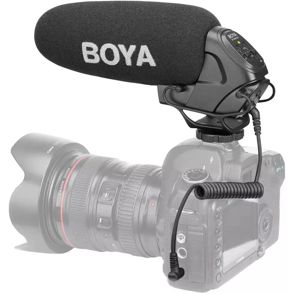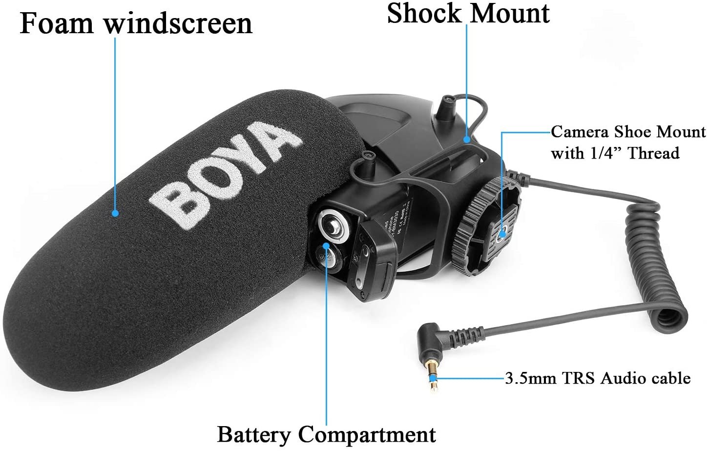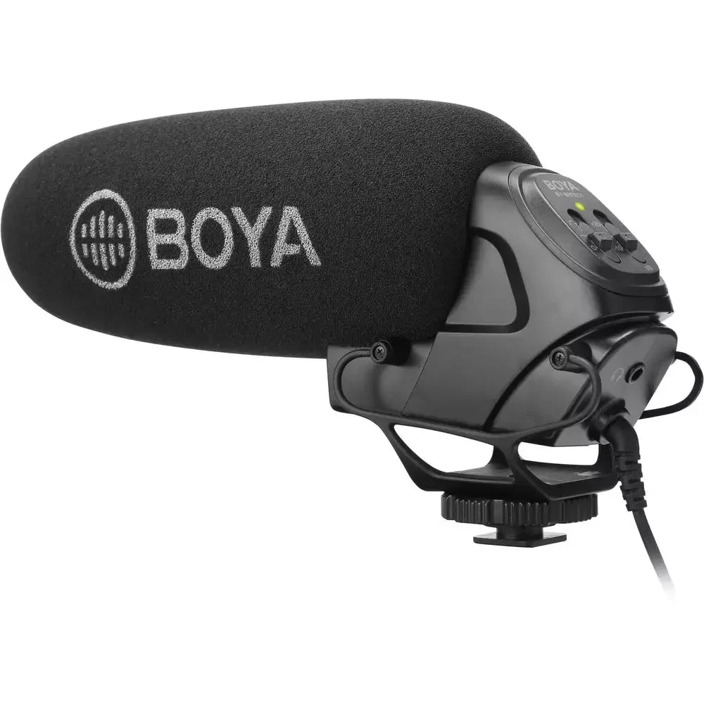 BOYA BY-BM3031 Super‑Cardioid On‑Camera Shotgun Microphone – 3‑Position Gain, 80 Hz High‑Pass Filter, Headphone Jack, Shockmount