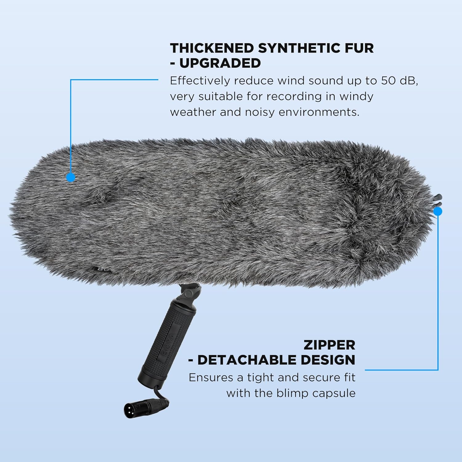 - High-density synthetic fur minimizes wind noise in outdoor recordings