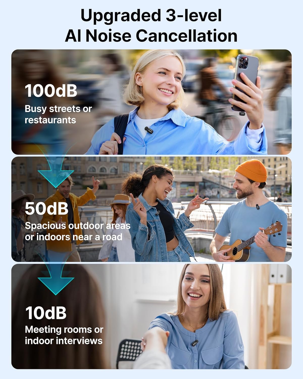 BOYA Mini Ultra-Mini Wireless Lavalier Mic – 16-Bit USB-C & Lightning, 100 m 2.4 GHz Transmit, 6 h Battery + Charging Case, AI Noise Cancelling
