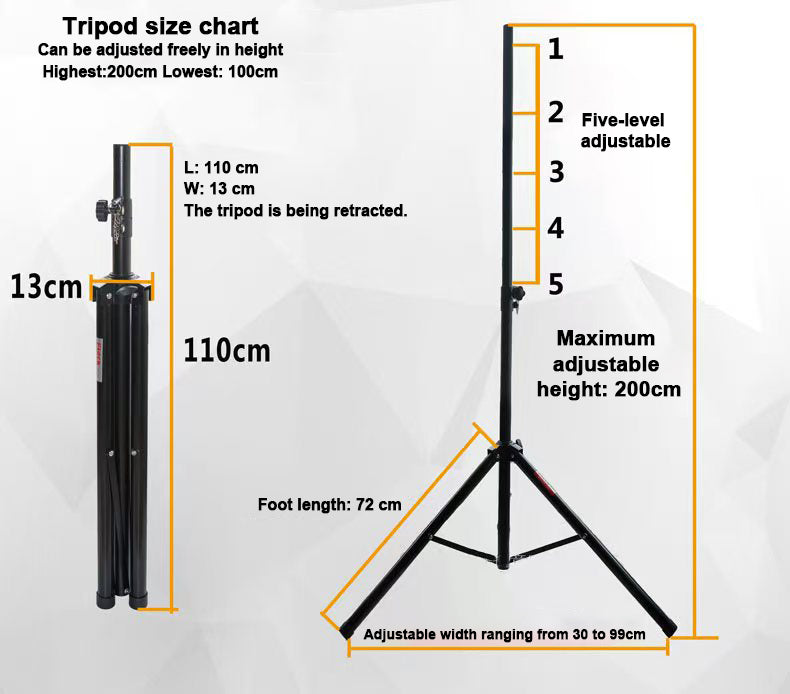 CMX Adjustable Floor Tripod Stand with 5-Level Height Control, 100–200cm Height Range, 72cm Foot Length, 99cm Max Width