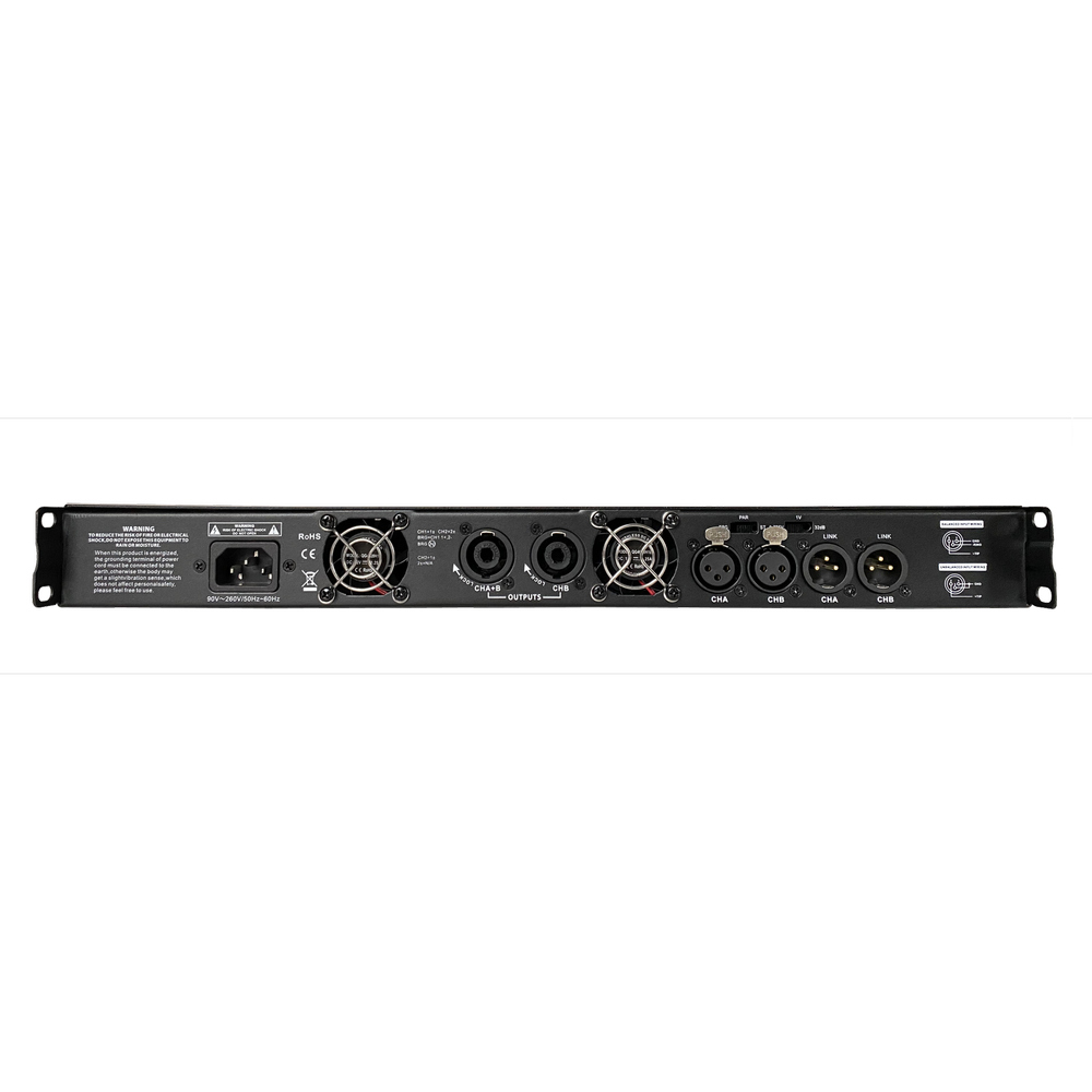 The CS-21000 is a professional 2-channel Class-D digital power amplifier delivering a powerful 2×1000W RMS @8Ω. Designed for high-demand audio reinforcement systems, it features a compact 1U rack-mount chassis with an LCD display and high efficiency. The amplifier supports stereo, parallel, and bridge modes, providing flexibility for different sound setups. With advanced switching power supply, balanced XLR inputs, Speakon outputs, and full circuit protection, it’s ideal for live sound, installations, and touring.