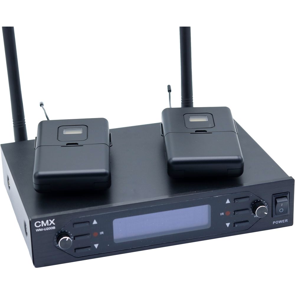 CMX UHF Wireless Microphone System, Two channel, bodypack receiver with lavalier Mic.