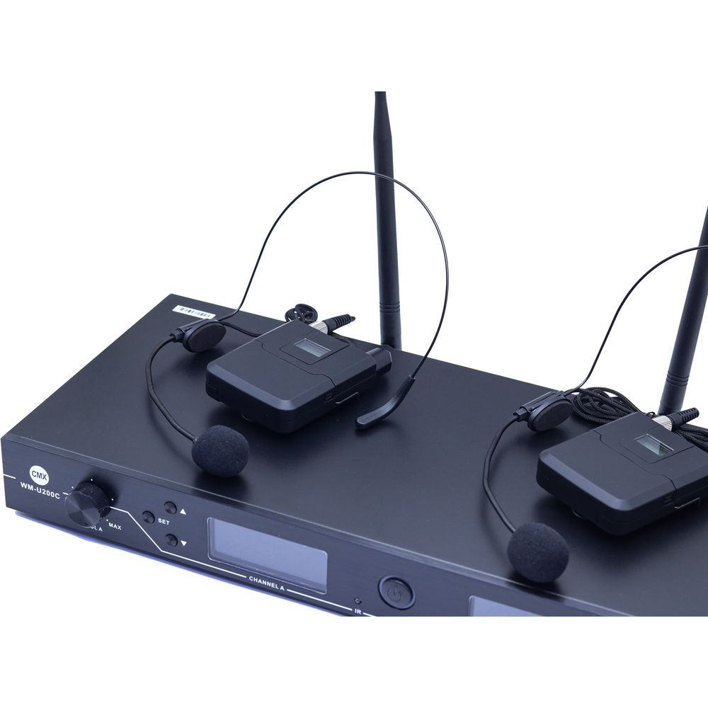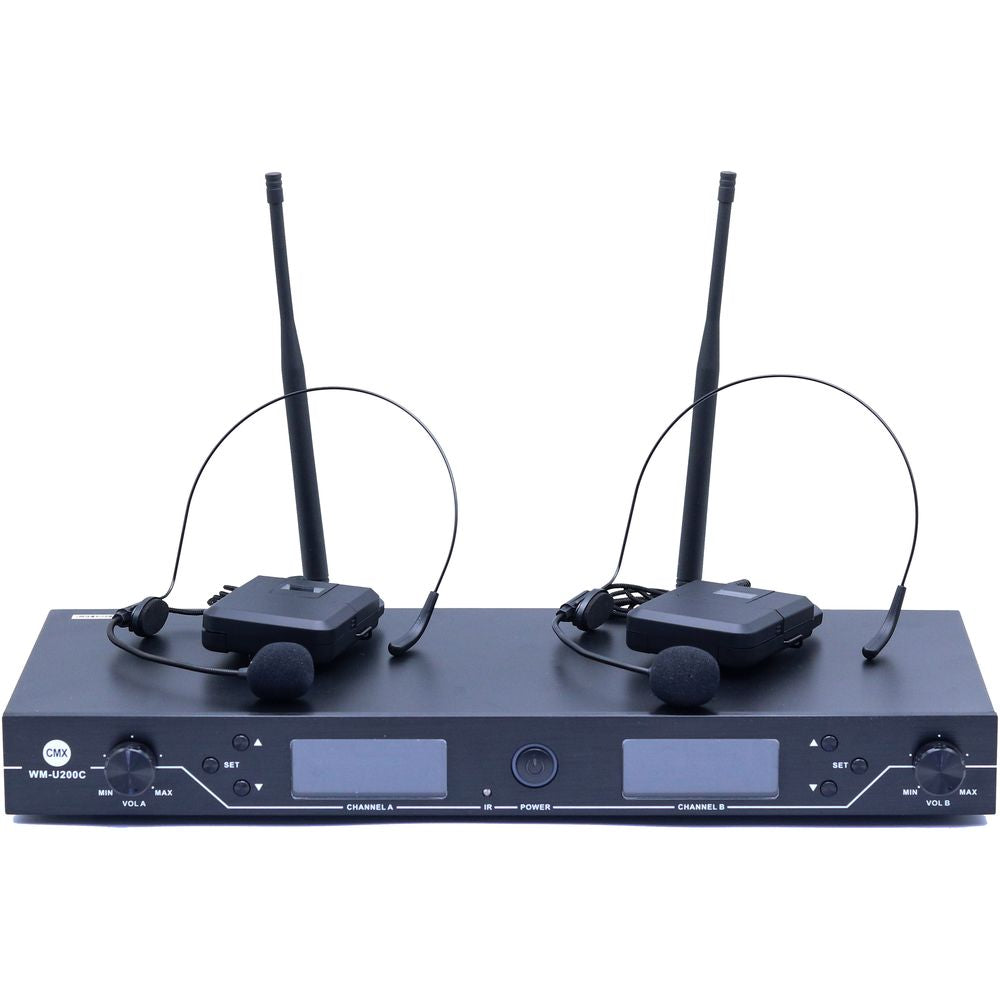 CMX CMX UHF Wireless Microphone System – Dual Channel with Headset Mic, Adjustable Frequency, 200 Channels, Long Range