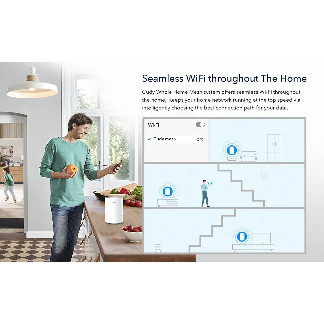 - Smart Mesh Network: Automatically connects devices to the strongest signal for uninterrupted performance.