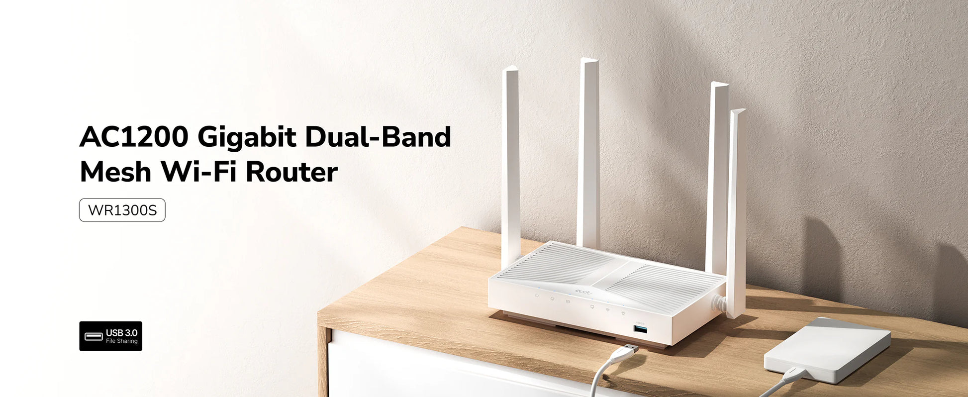 Cudy WR1300S 1.0 AC1200 Mesh Wi‑Fi Router (Gigabit 5‑Port, USB, MU‑MIMO, Beamforming, Cudy App & VPN)