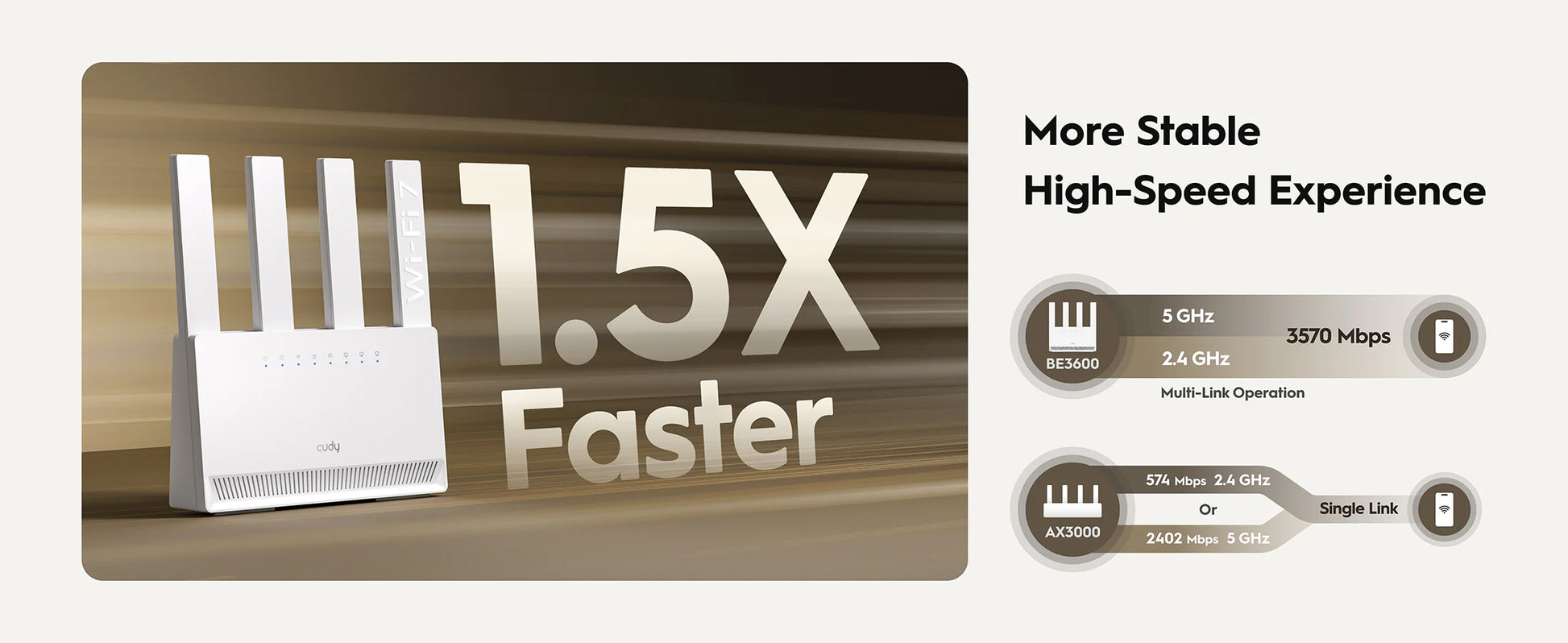 - Wi-Fi standard: Wi-Fi 7 with 4-stream dual-band support (2.4 GHz + 5 GHz)