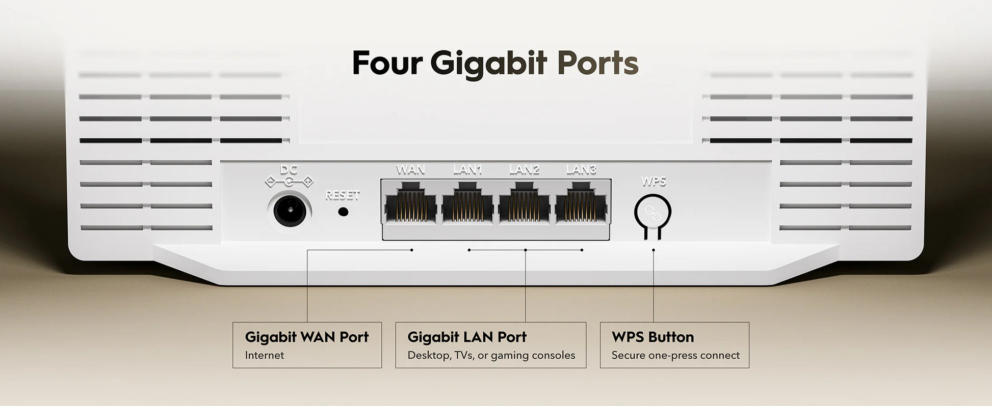 - Ethernet: 1× WAN and 3× LAN Gigabit RJ45 ports for wired connectivity