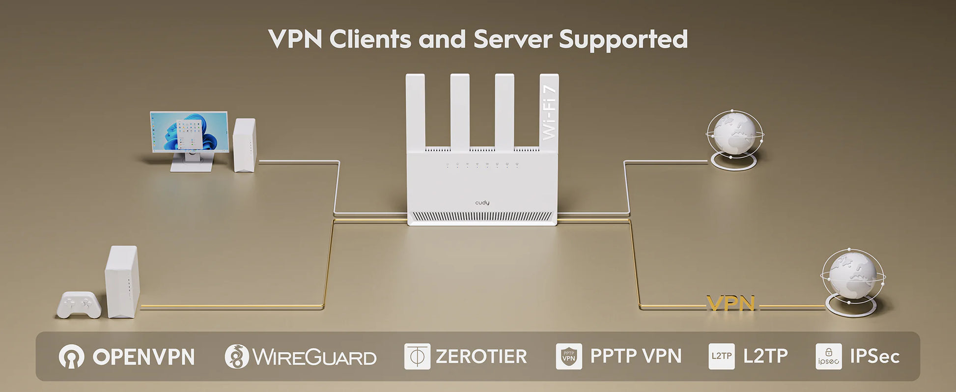 - VPN server and client support