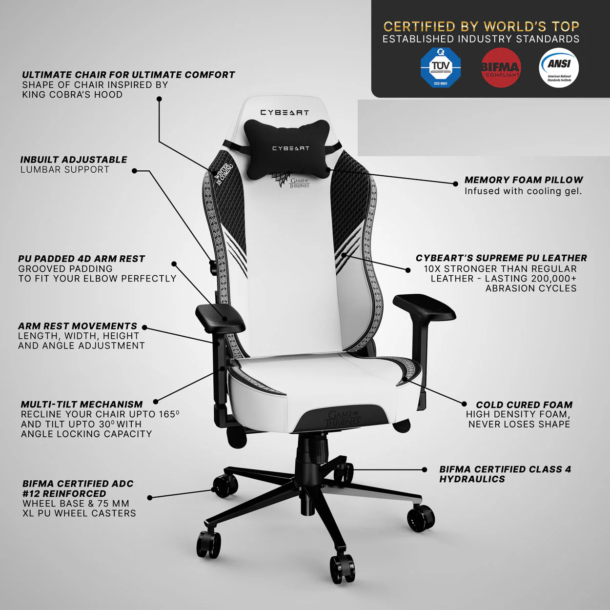 Cybeart House Stark Gaming Chair – Game of Thrones Edition with 4D Armrests, Supreme PU Leather