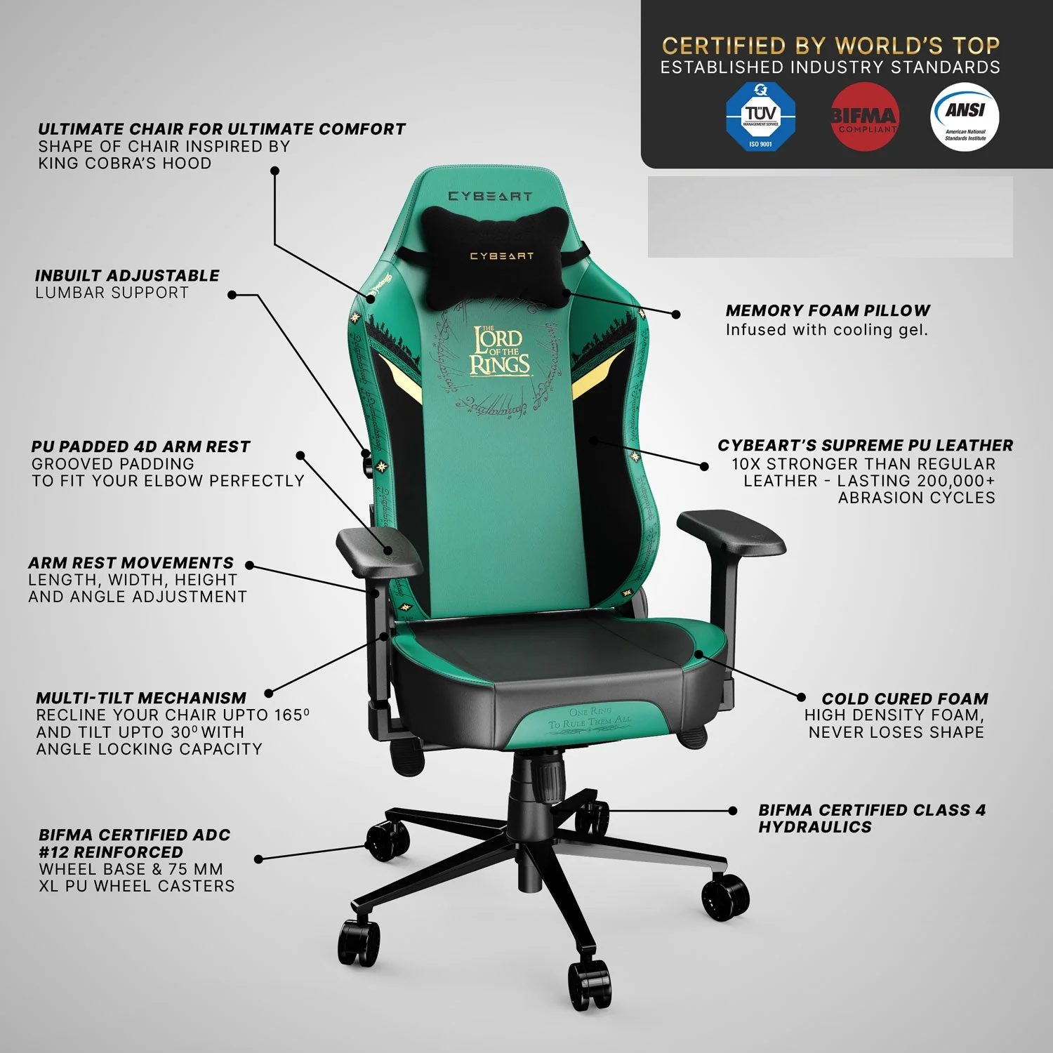 Cybeart Lord of the Rings Gaming Chair – Official Licensed Edition with Supreme PU Leather, 4D Armrests