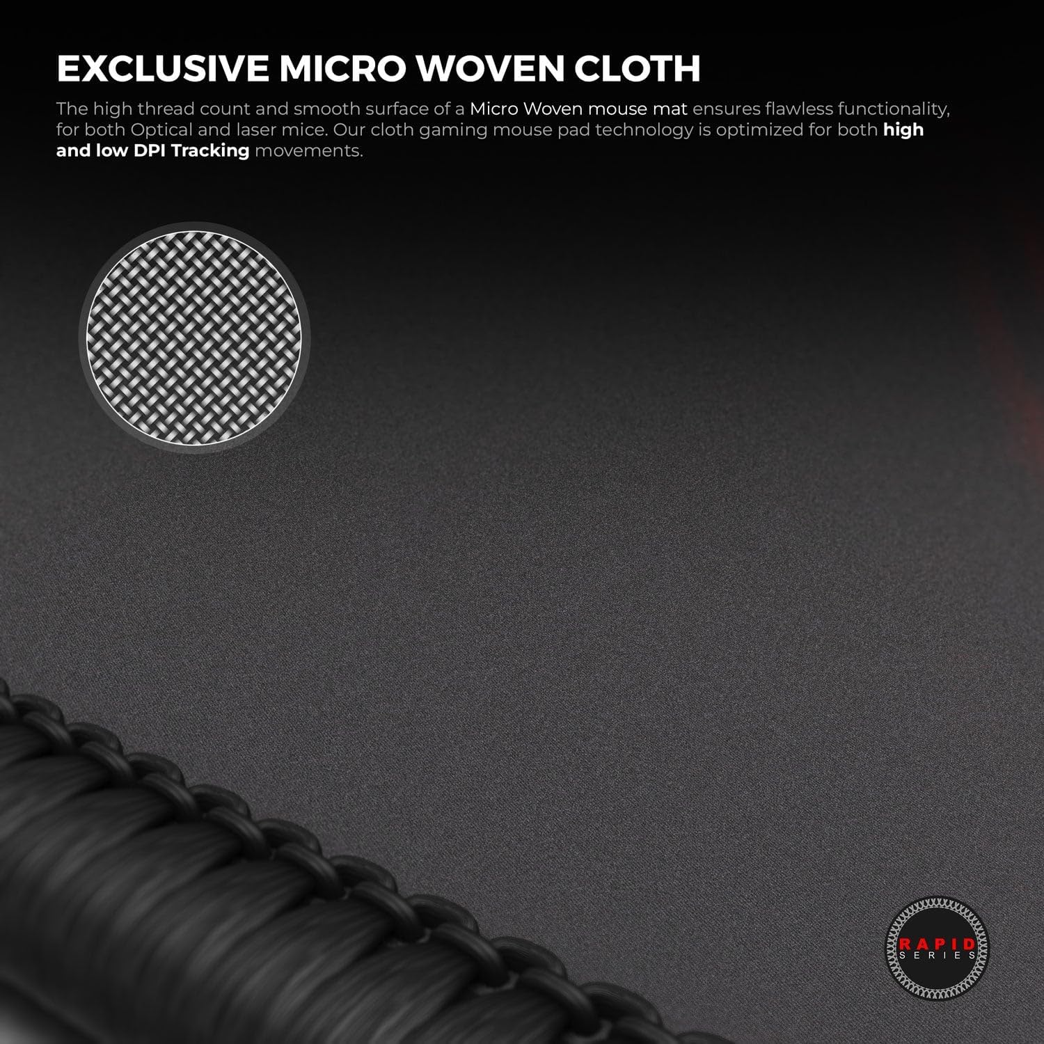 Exclusive Micro-Woven Spill-proof / Water-proof Cloth Surface - Optimized for both Laser & Optical mice and high & low DPI tracking movements.