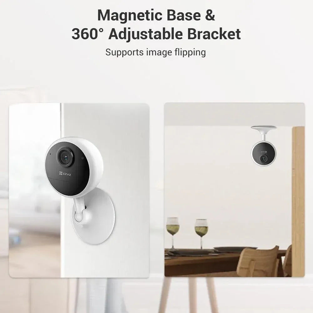 The EZVIZ CB1 is a compact, wire-free indoor camera designed for flexible placement and reliable performance. With a built-in 1,600 mAh rechargeable battery offering up to 40 days of use, this camera can be set up anywhere inside your home. Its magnetic base and 360° adjustable bracket make it easy to install on flat, metallic, or ceiling surfaces. Packed with essential features like 1080p video, IR night vision, two-way talk, and smart human motion detection, the CB1 delivers convenient security and peace of mind.