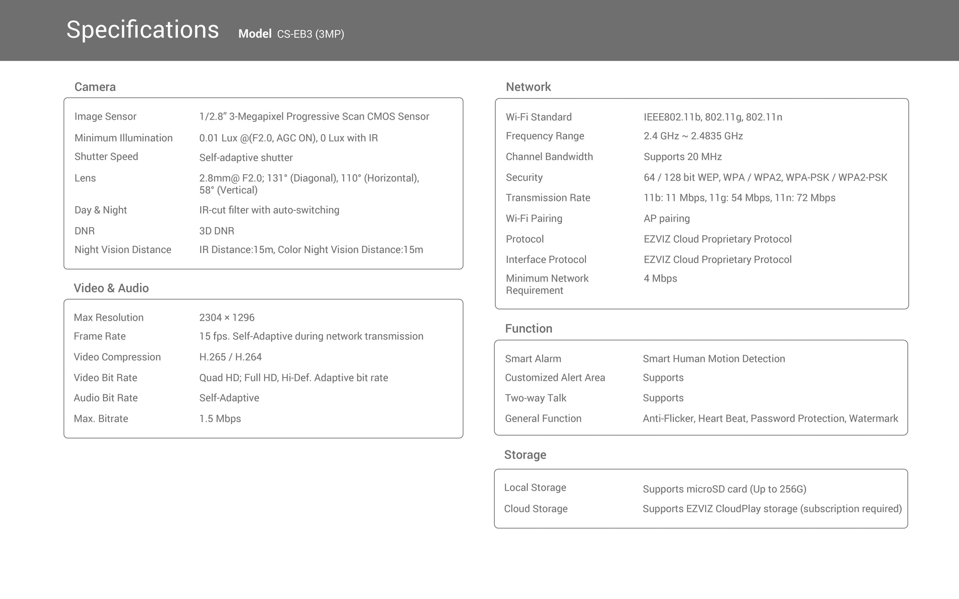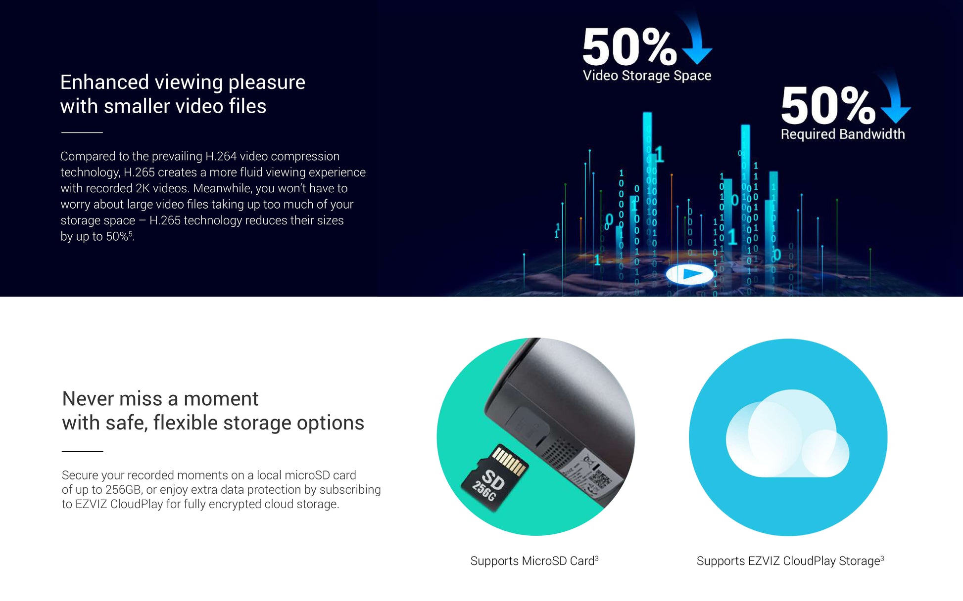 - Flexible Storage Options: Supports up to 512 GB microSD card and EZVIZ CloudPlay (subscription required).