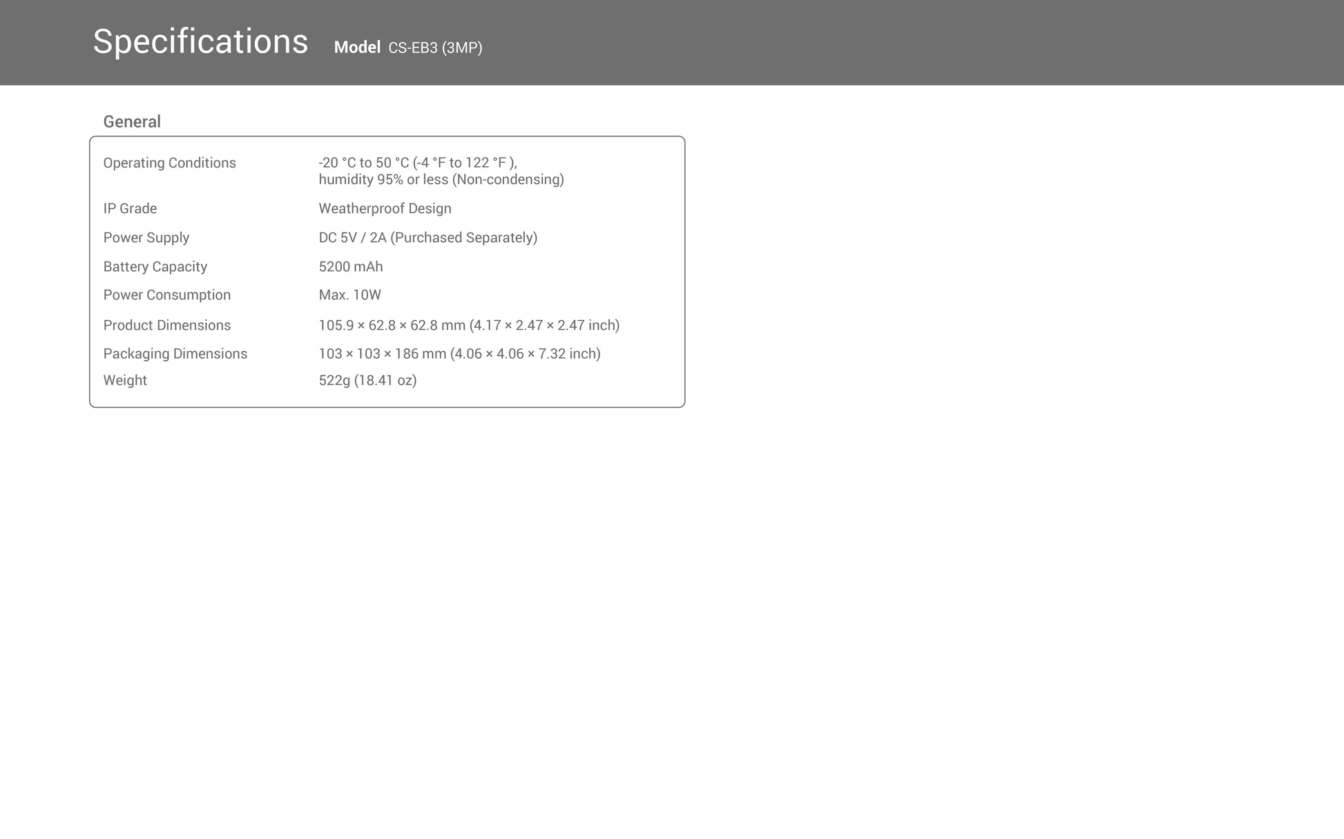 - Long Battery Life: Equipped with a 5200 mAh rechargeable battery, the EB3 can operate up to 120 days on a single charge.