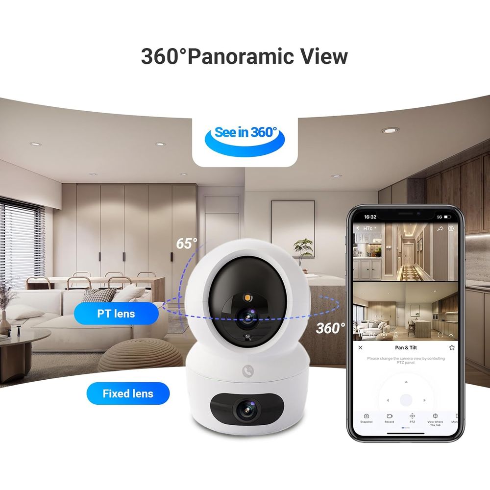 EZVIZ H7c Dual 2K+ Pan & Tilt Wi-Fi Camera with Dual Lenses, AI Human Detection, Color Night Vision & 2-Way Talk
