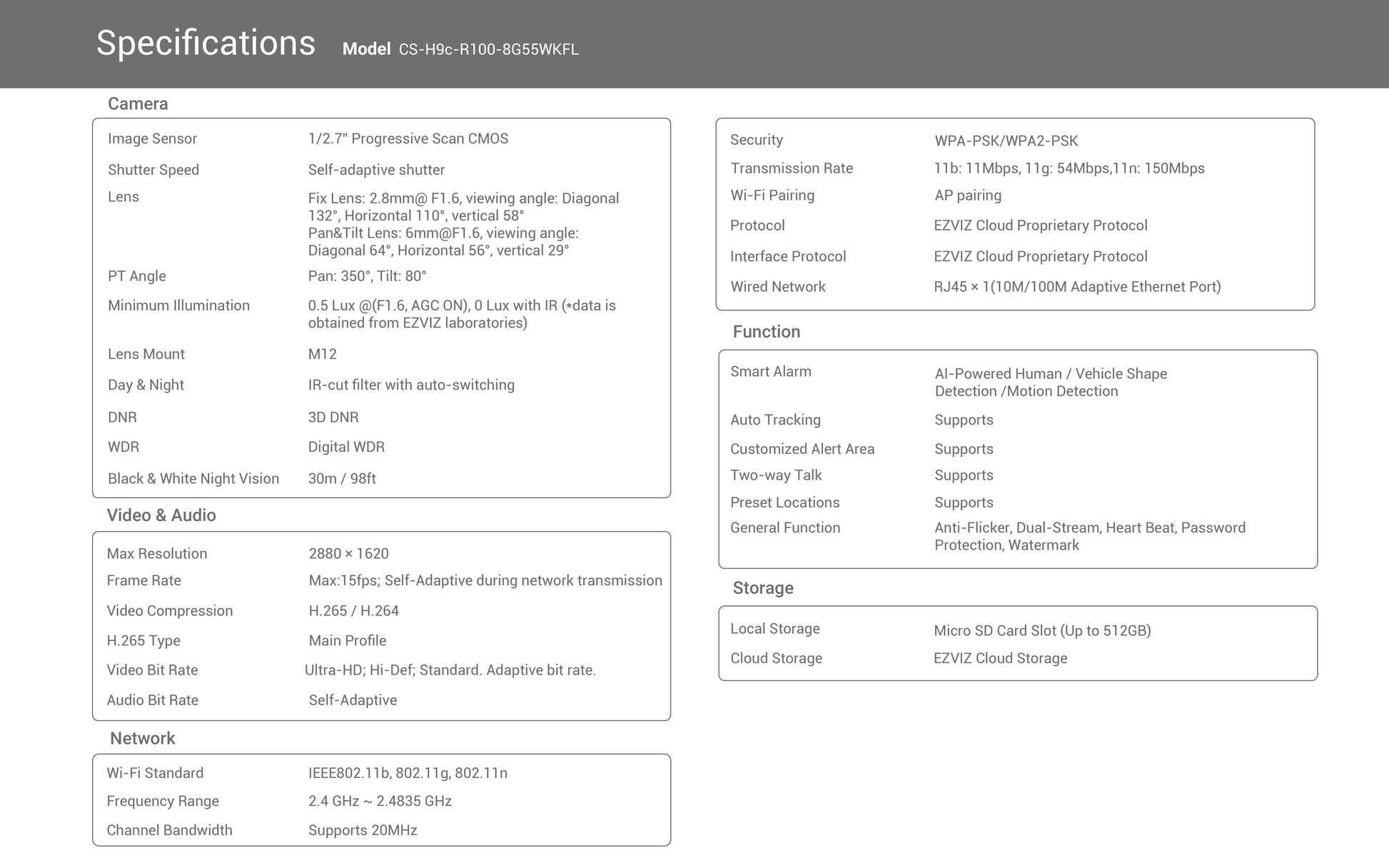 - Two-Way Talk: Speak and listen in real time via the EZVIZ App.