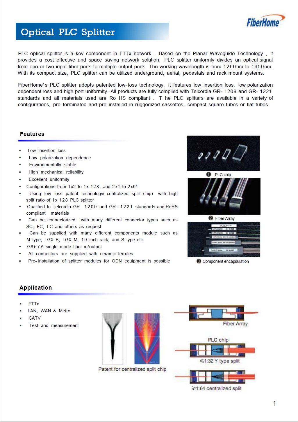 FiberHome LGX-M PLC Optical Splitter – 2×8 SC/APC, G657A Fiber, Low Insertion Loss, Telcordia GR-1209/1221, RoHS, IP65, -40°C~+85°C