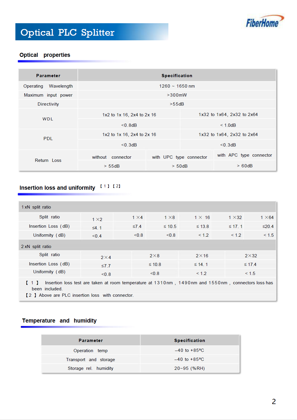- Return loss: 60 dB (APC) | Directivity: >55 dB