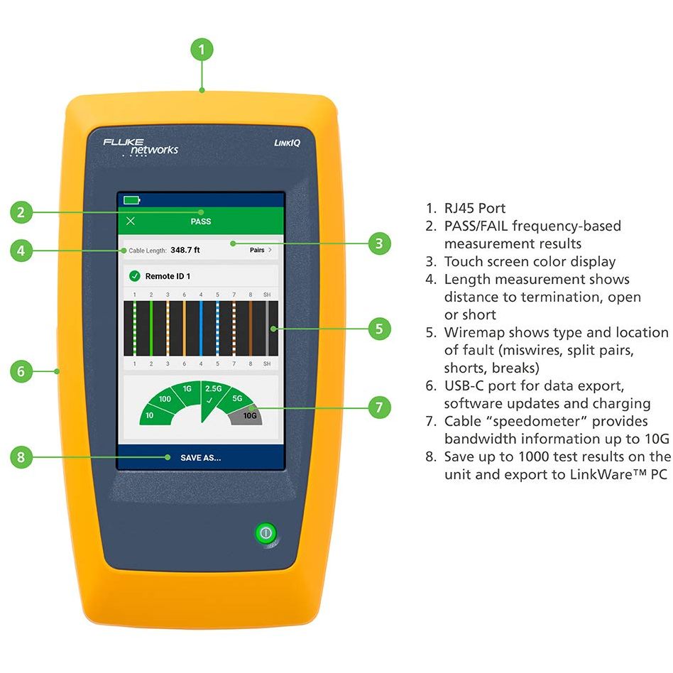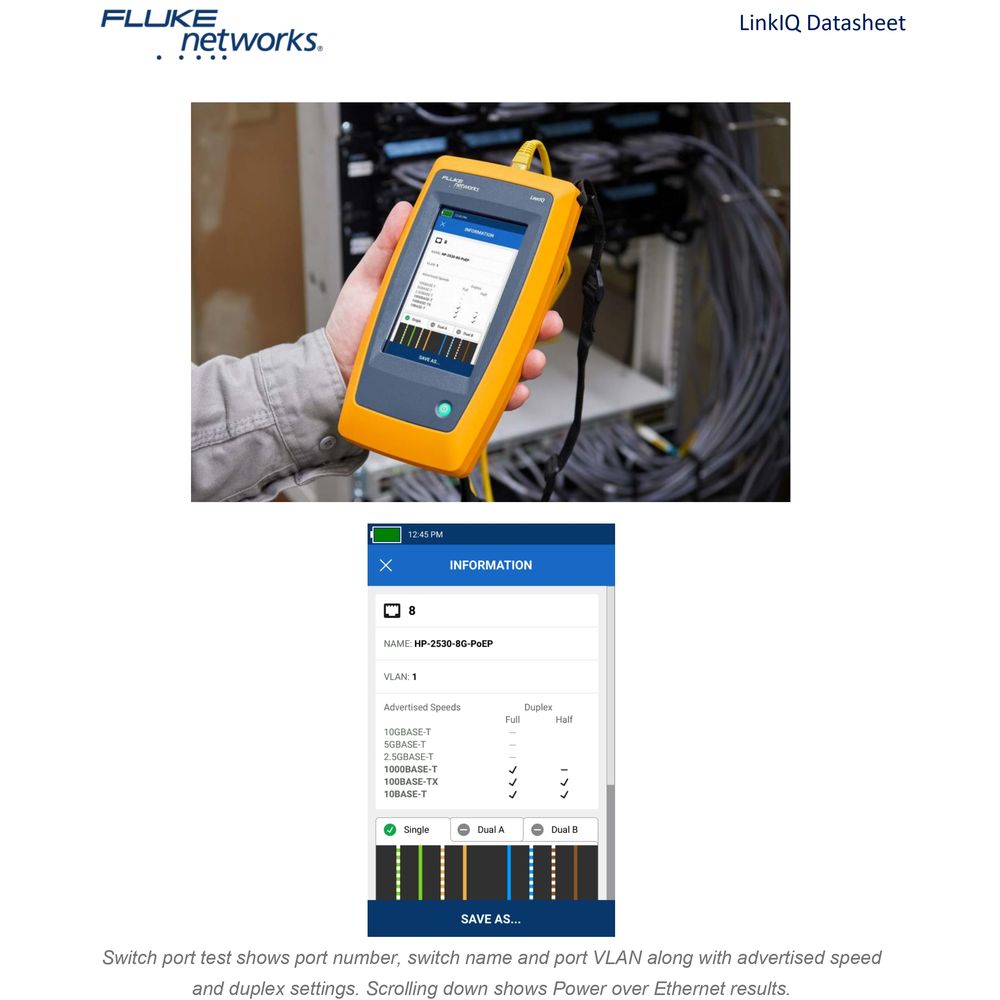 Fluke Networks LinkIQ Cable + Network Tester with PoE Load Test, 10G Support, Wire Mapping, and Switch Diagnostics