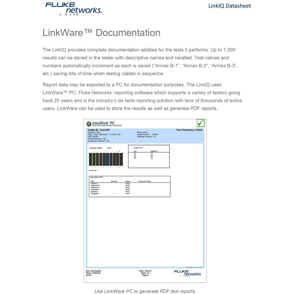 - Save up to 1000 test results and manage via LinkWare™ PC software