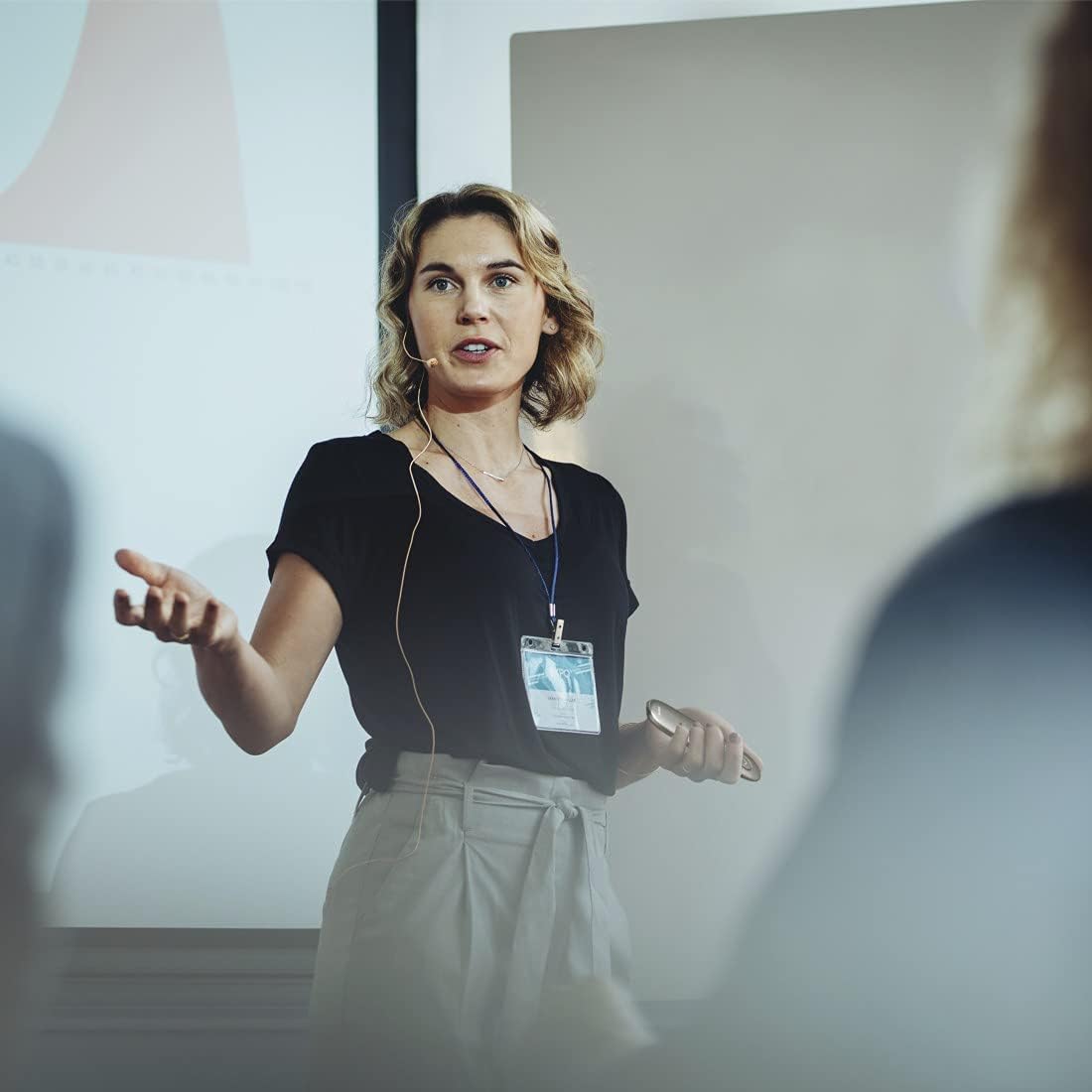 - Package Contents: Includes presenter, USB receiver with microSD card, USB-C charging cable, transport bag, and user manual