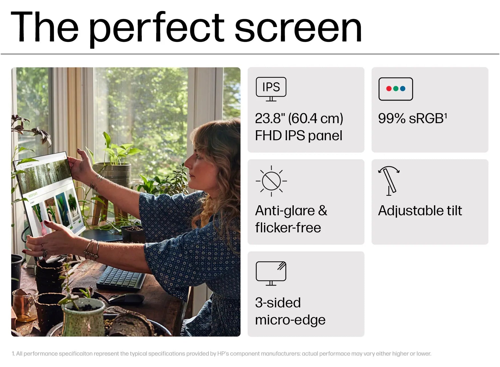 - 23.8″ (60.5 cm) IPS display with Full HD (1920 × 1080) resolution