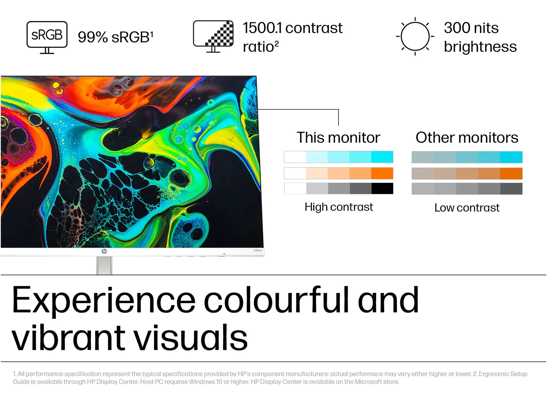 - 99 % sRGB color coverage, 1500:1 contrast ratio, 300 nits brightness