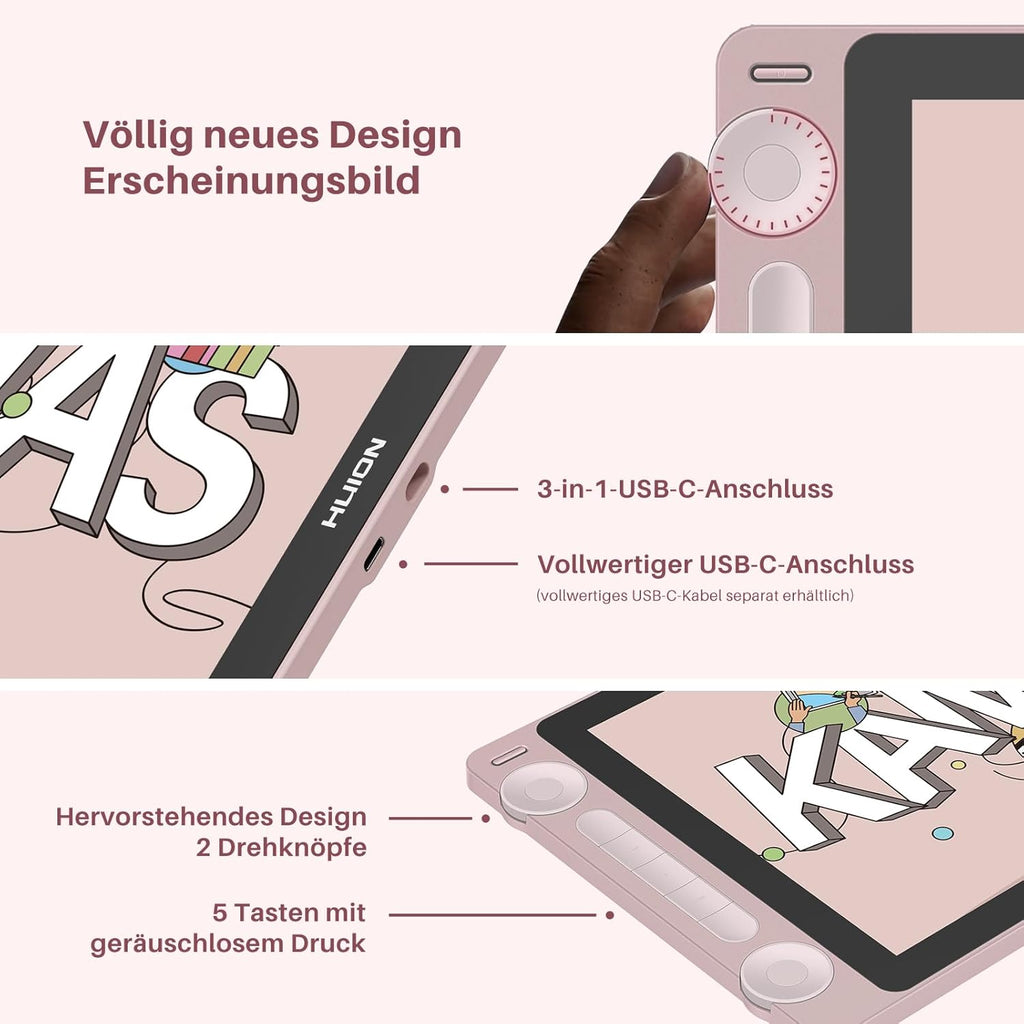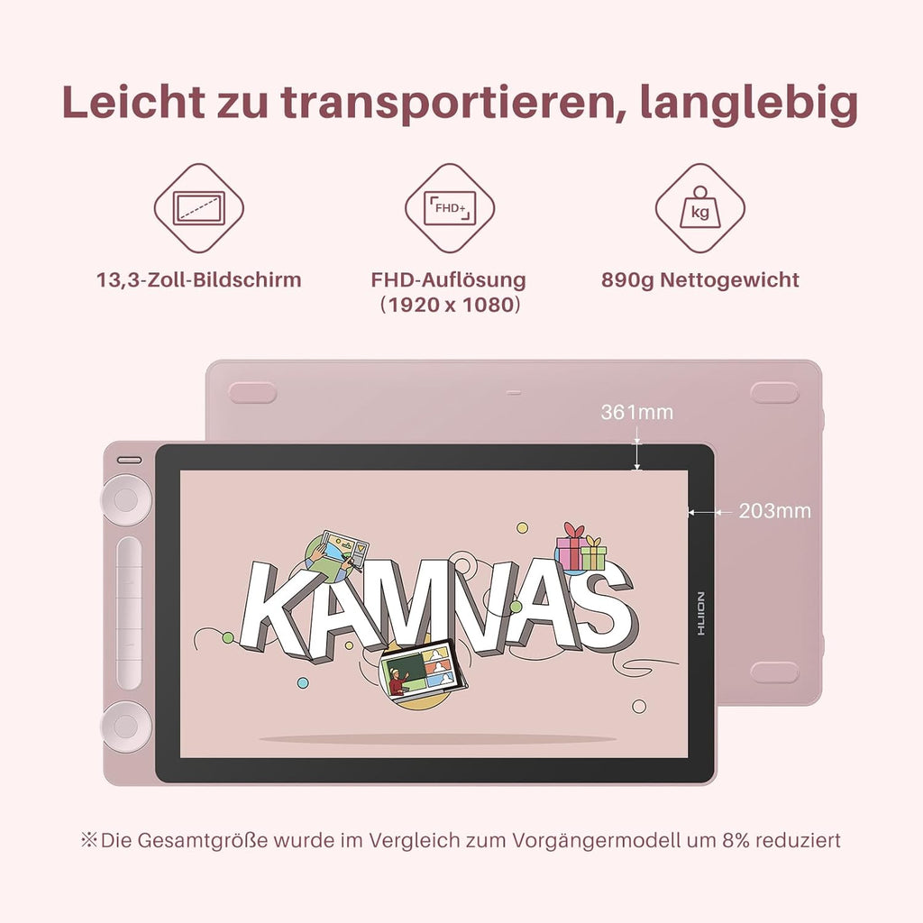 Huion Kamvas 13 (Gen 3) – 13.3″ FHD Pen Display, Anti-Sparkle Laminated Glass, PenTech 4.0 & Dual Dials, 99% sRGB