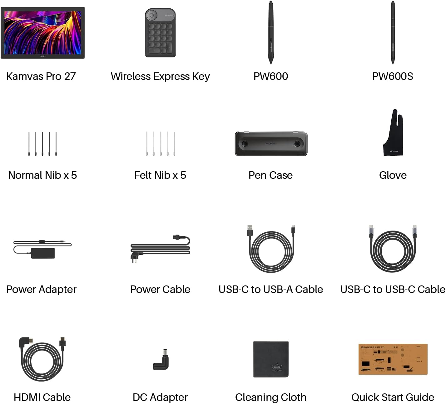 The HUION Kamvas Pro 27 is a premium pen display designed for professional digital artists and designers. Featuring a 4K UHD display, an advanced battery-free stylus, and an adjustable stand, it delivers exceptional performance and vibrant colors for a superior creative experience.