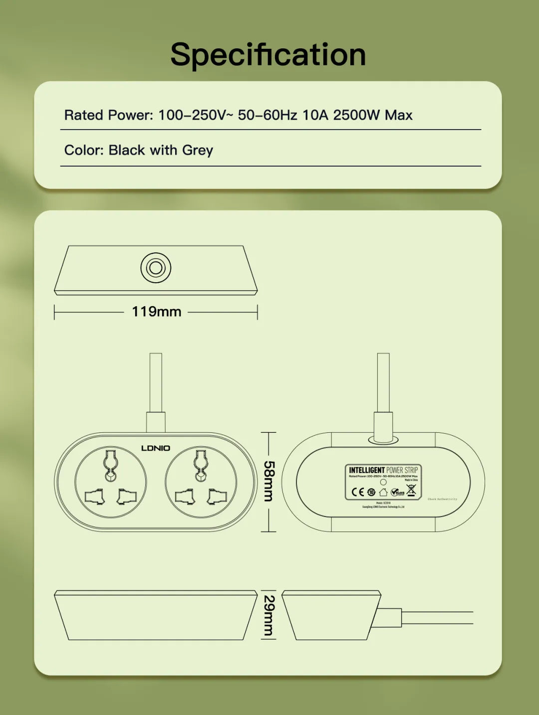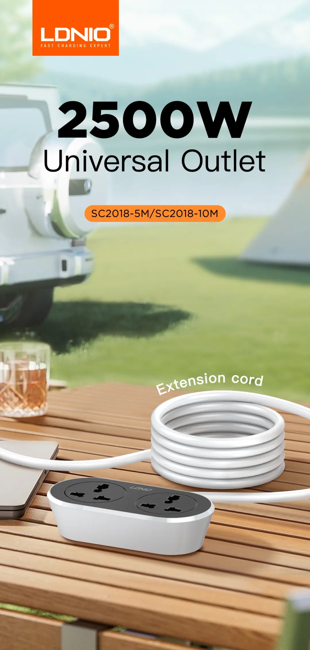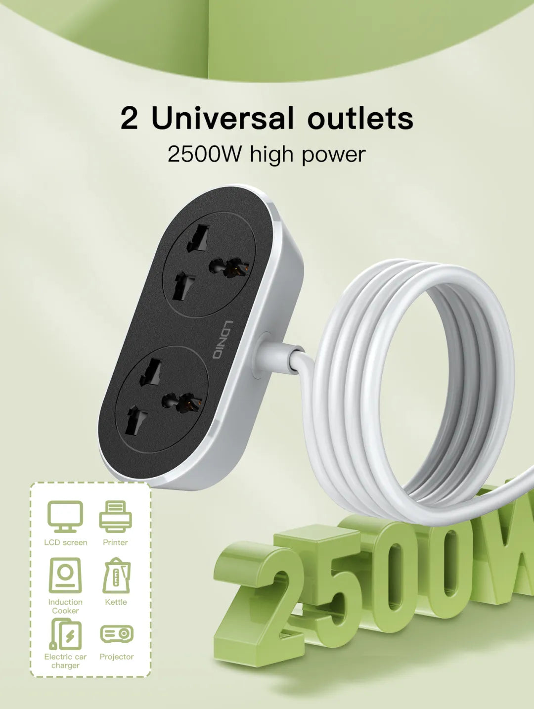 LDNIO 2 AC Outlet Universal Extension Power Socket SC2018