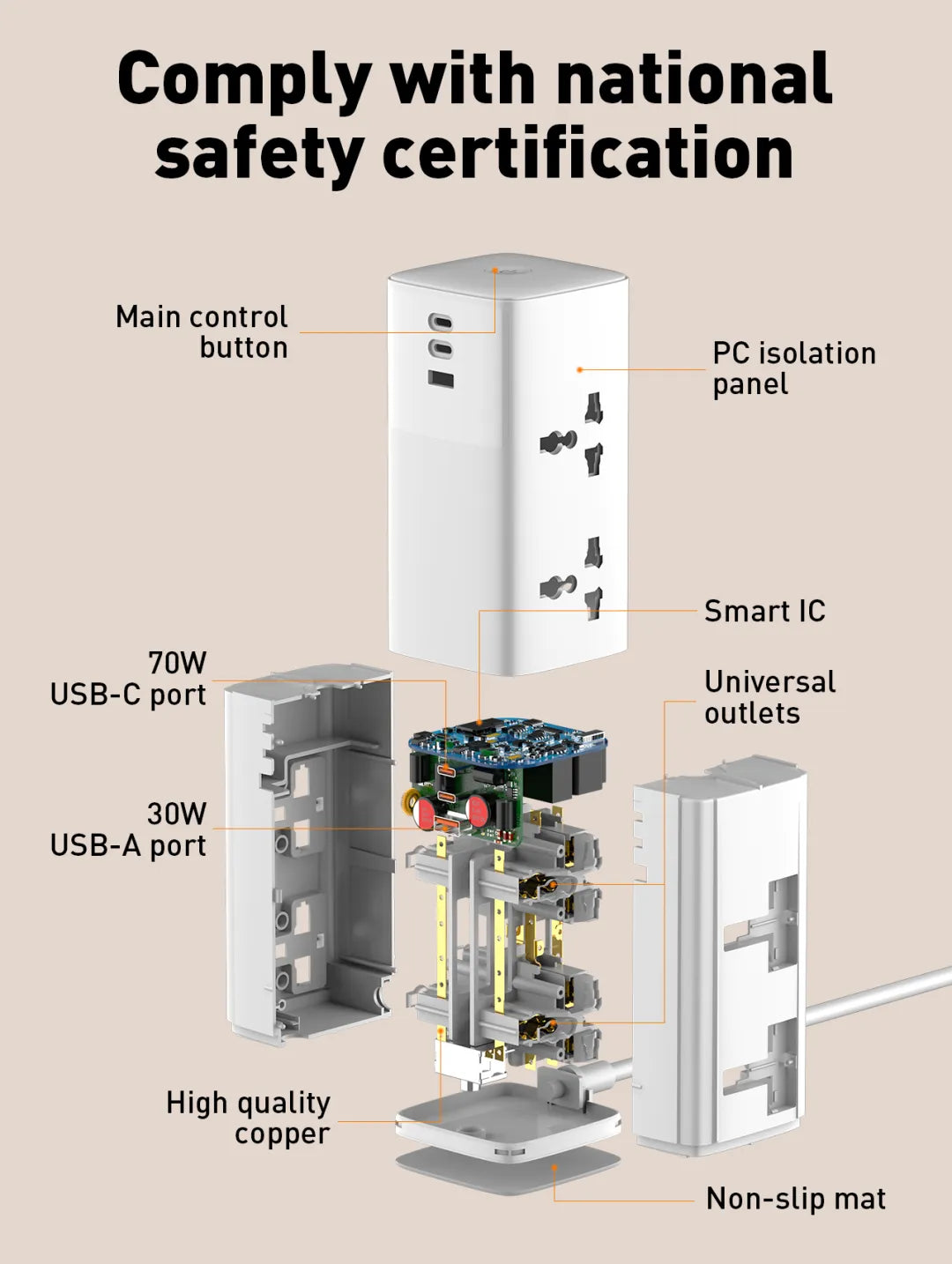 - USB-C1 + USB-A1: 50W + 18W (68W Max)