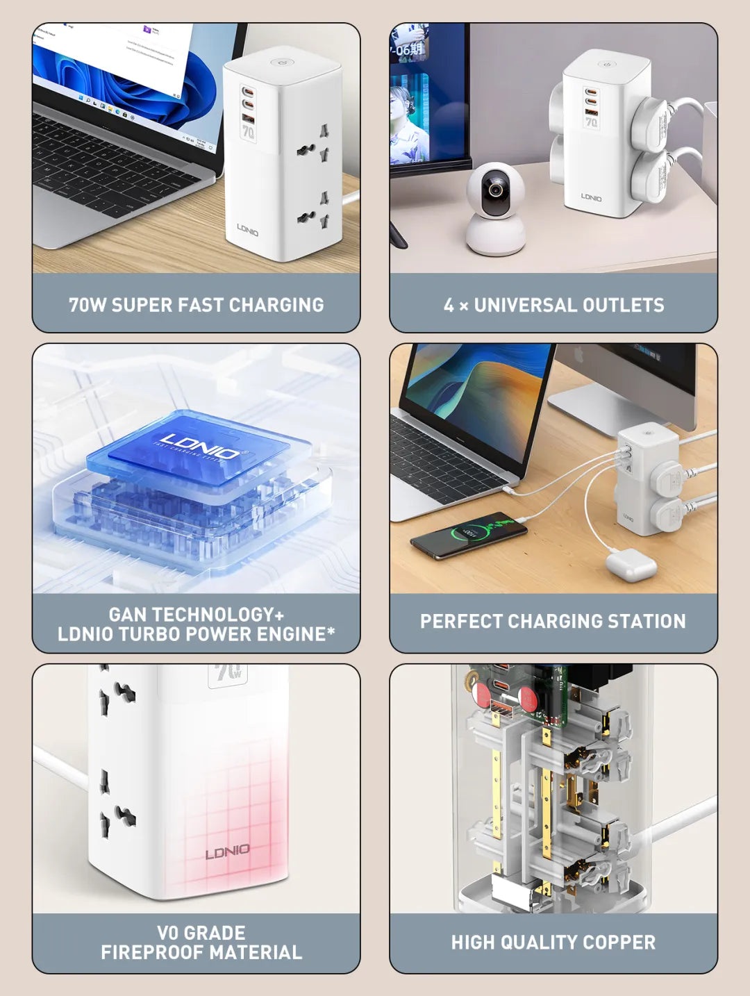 LDNIO 70W Multifunctional Universal Desktop Power Adapter SC4383