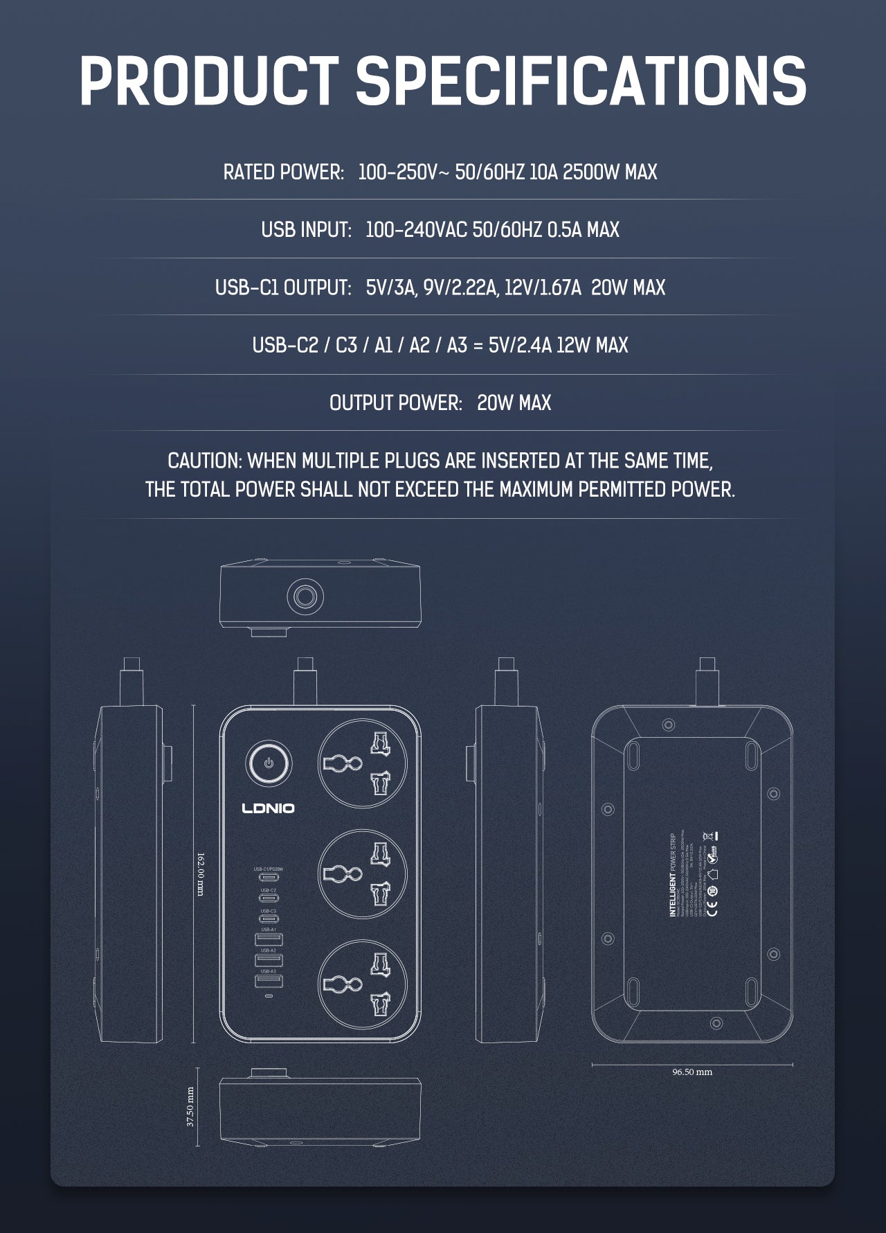 - 6 USB Ports: Includes 3 USB-A and 3 USB-C ports for convenient charging of smartphones, tablets, and other USB-powered devices.