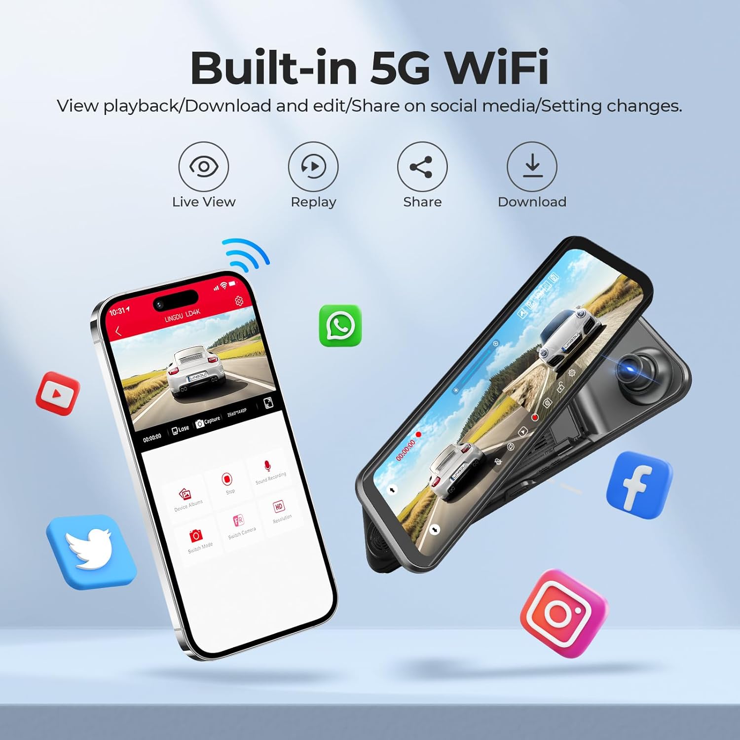 - Smart App Control: Connects via 5GHz Wi-Fi for easy video download, sharing, and setting adjustments through the LINGDU app.