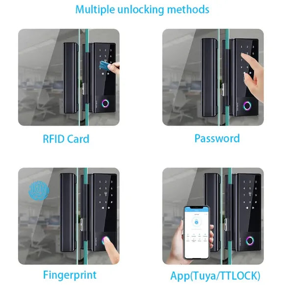 Locstar-C83a Intelligent Home Digital Electronic Glass Door Lock Wifi Tuya App Card Fingerprint Password Smart Door Lock