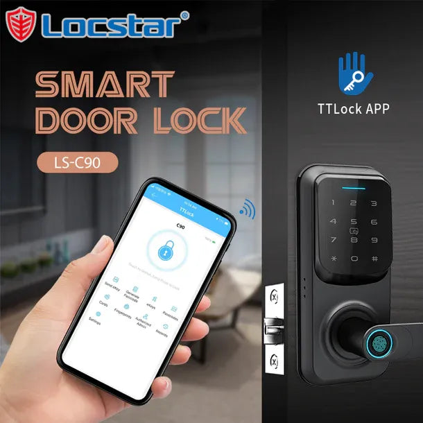 Locstar-C90 Digital Fingerprint Lock Keyless Entry Keypad Smart Door Lock with Handle